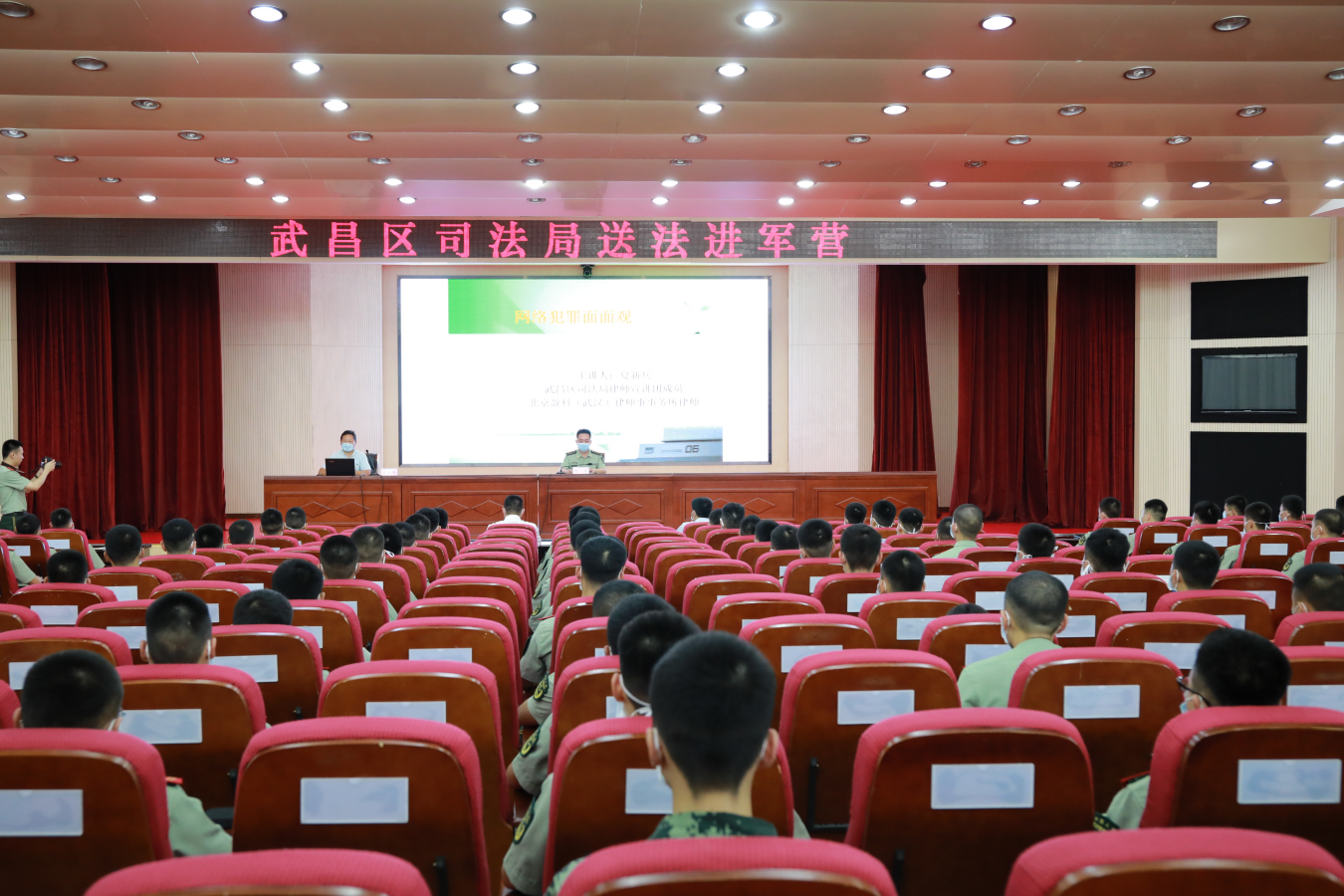 7月23日上午,武昌区粮道街司法所走进辖区武警医院,开展“送法进军营,共筑强军梦”活动。法治讲座由武昌区律师讲师团成员夏新兵律师授课,讲授了题为“网络犯罪面面观”的法治公开课。