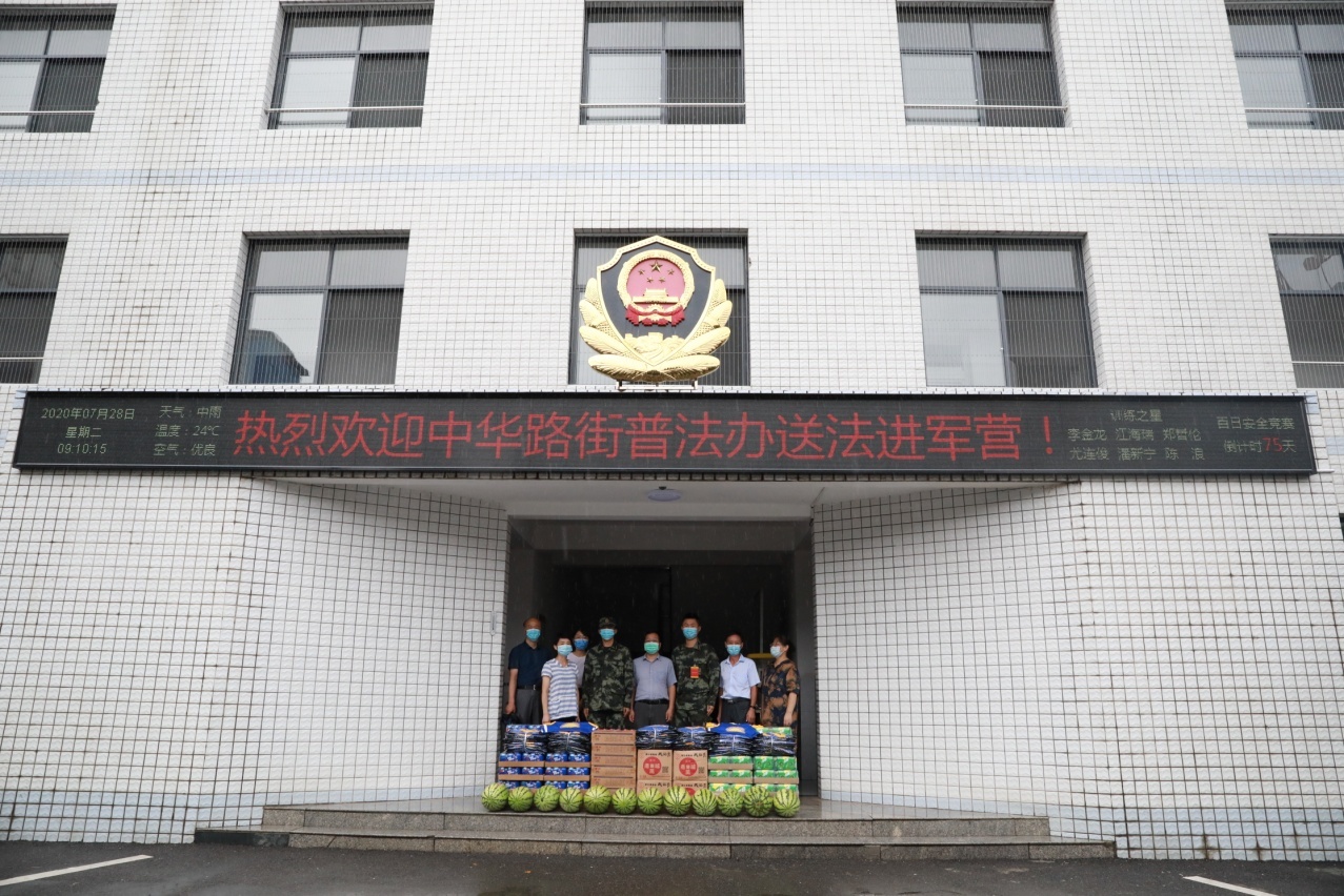 7月28日上午,武昌区司法局与中华路街到武警武汉支队某守桥中队开展八一慰问工作,展开座谈会,交流密切感情,并举办以“情系子弟兵,送法进军营”主题的民法典法治讲座。