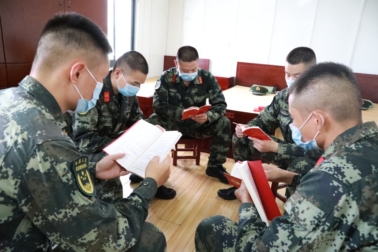 图为部队官兵学习民法典