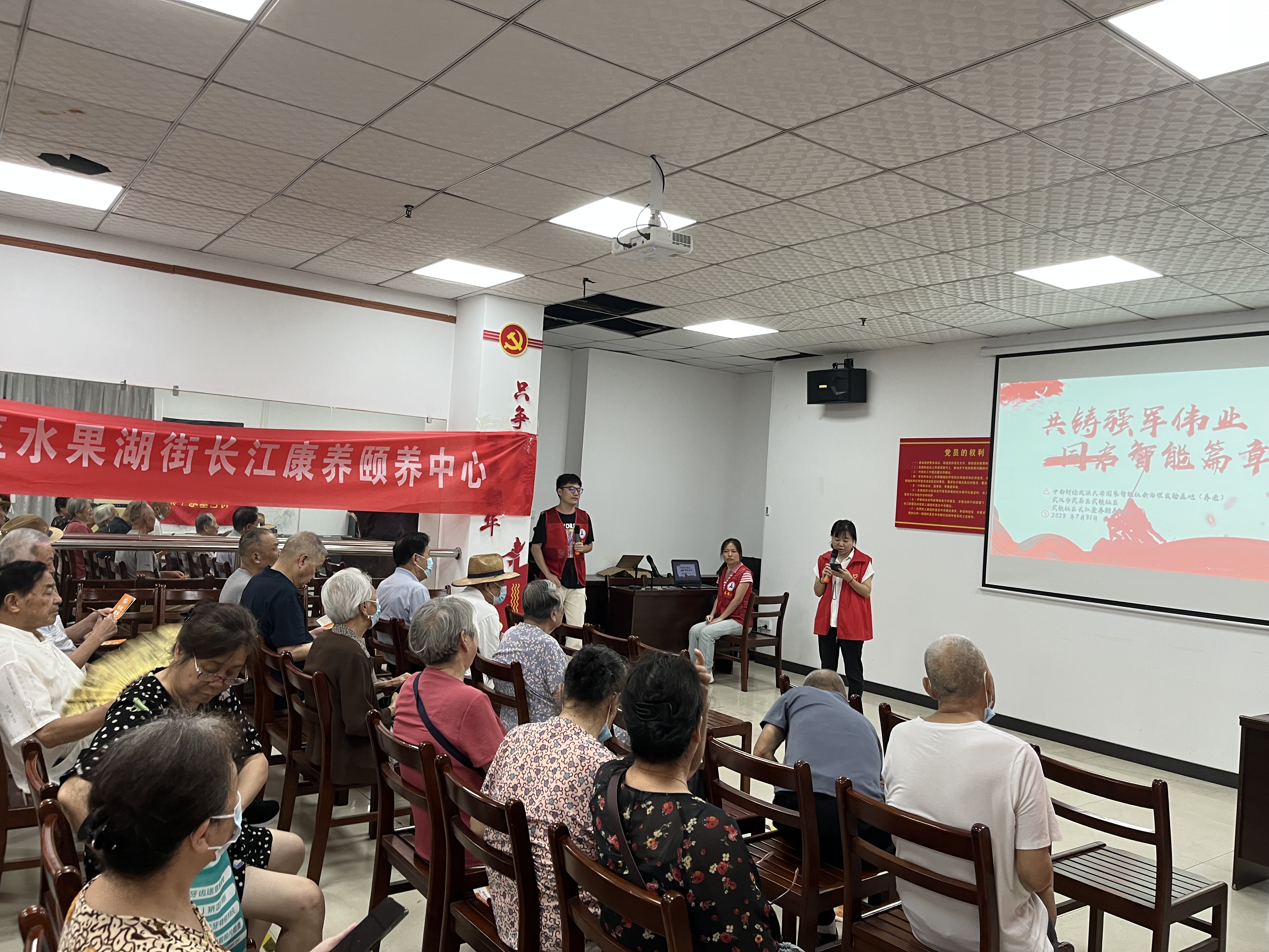 为弘扬爱国主义精神,讴歌人民军队丰功伟绩,7月31日,水果湖街道武铁社区联合长江康养颐养中心、中南财经政法大学志愿者团队开展了八一建军节庆祝活动,社区退伍复员军人、社区志愿者、老人40余人参加。