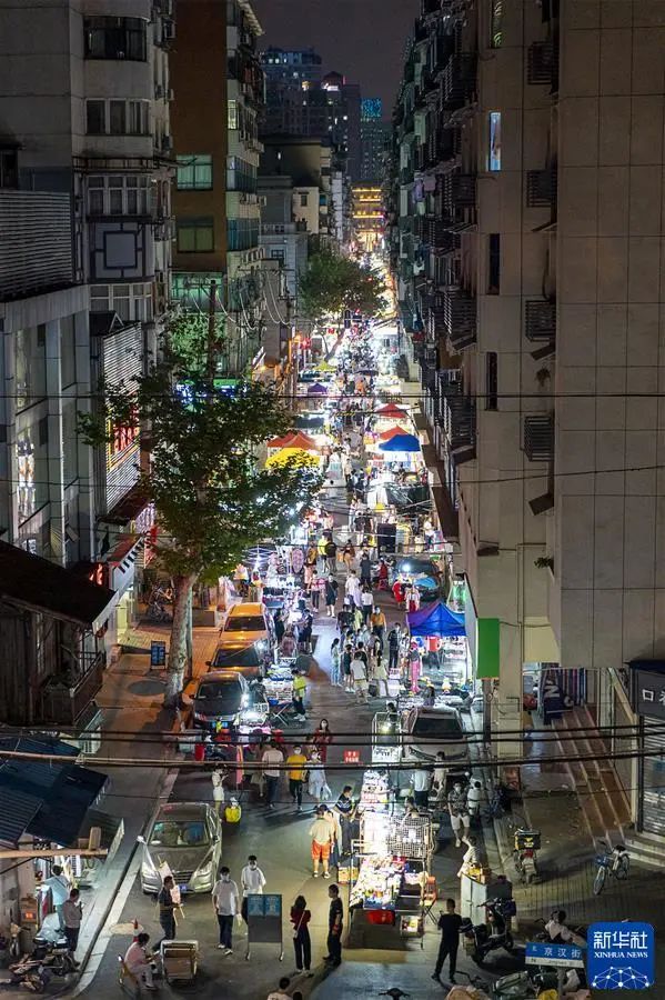 市民在湖北武汉保成路夜市消费休闲(2020年6月1日摄)。新华社记者 熊琦 摄