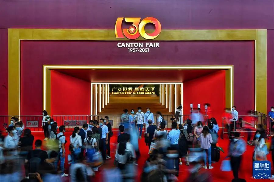 参展人员在第130届广交会现场(2021年10月15日摄)。新华社记者 刘大伟 摄