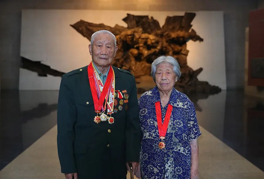 老战士宋广学(左)和张雅梅(右),2022年8月16日摄于辽宁省锦州市。新华社记者 杨青 摄