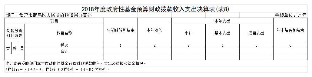 2018年度武汉市武昌区人民政府粮道街办事处部门决算
