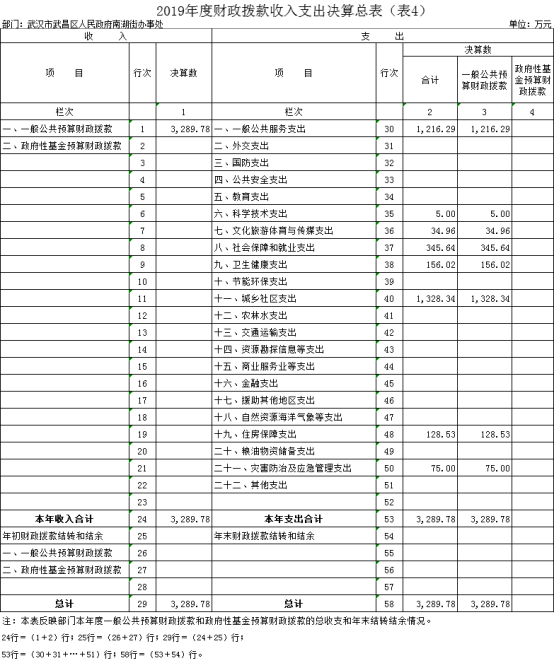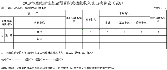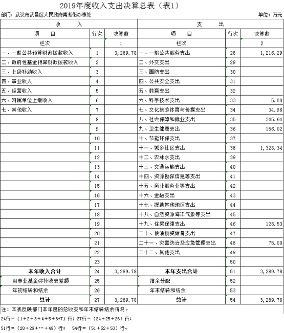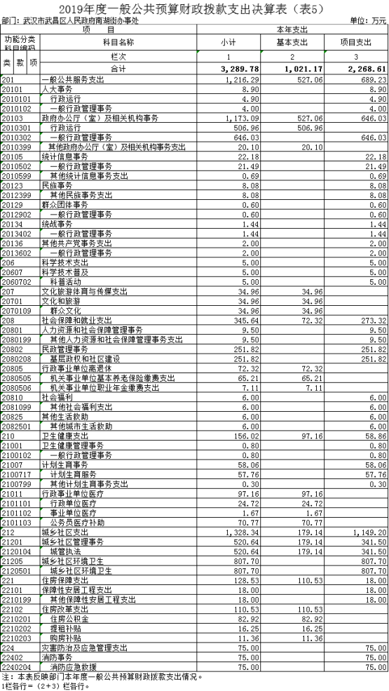 2019年度武汉市武昌区人民政府南湖街办事处部门决算