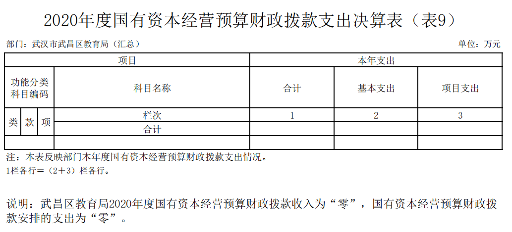九、国有资本经营预算财政拨款支出决算表(表9)