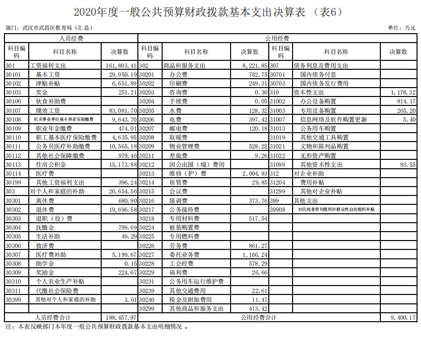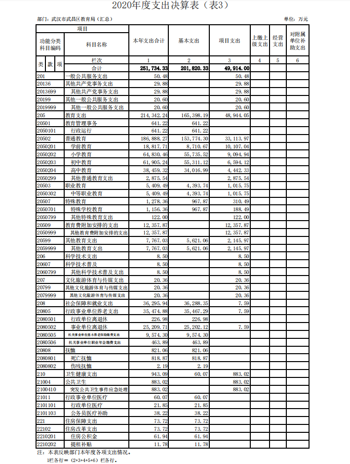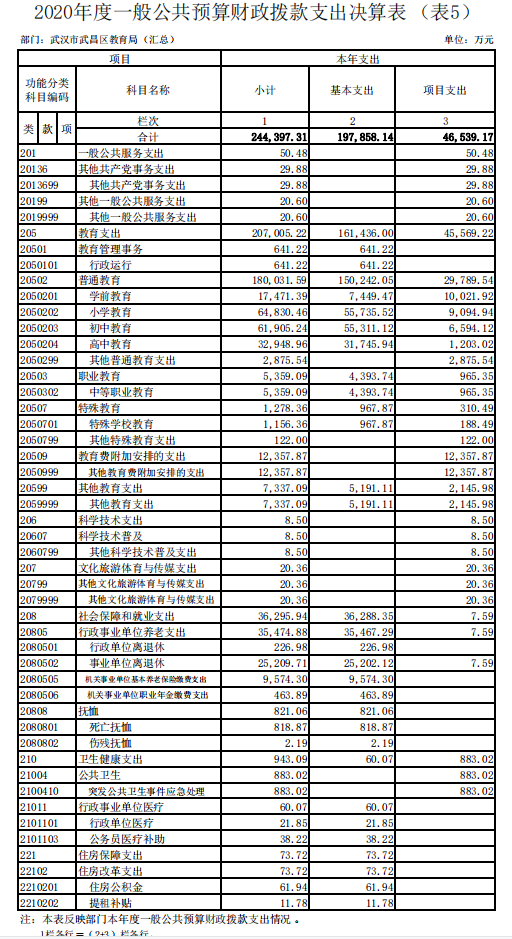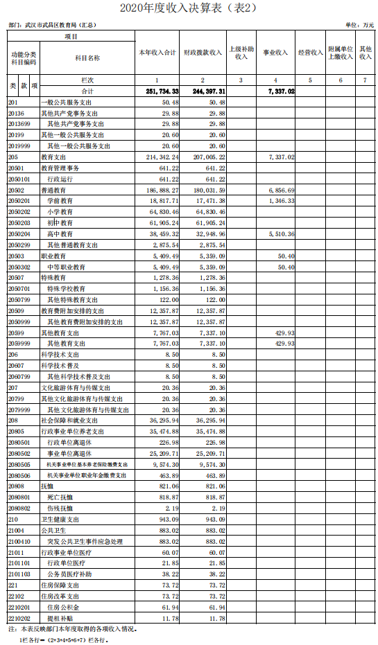 第二部分 武汉市武昌区教育局2020年度部门决算表