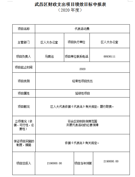 1.代表活动费项目219万元,主要用于武昌区人大代表履职和培训、宣传所需有关费用的开支。