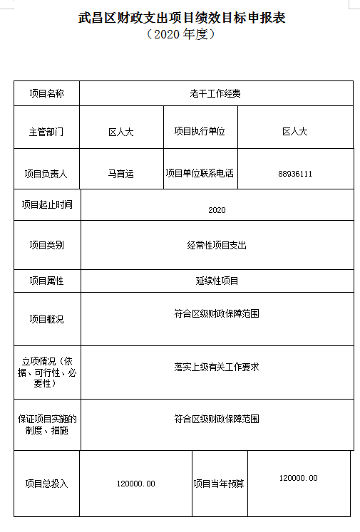 2.老干工作经费项目12万元,主要用于区人大机关离退休老干开展各项活动所需费用的开支。