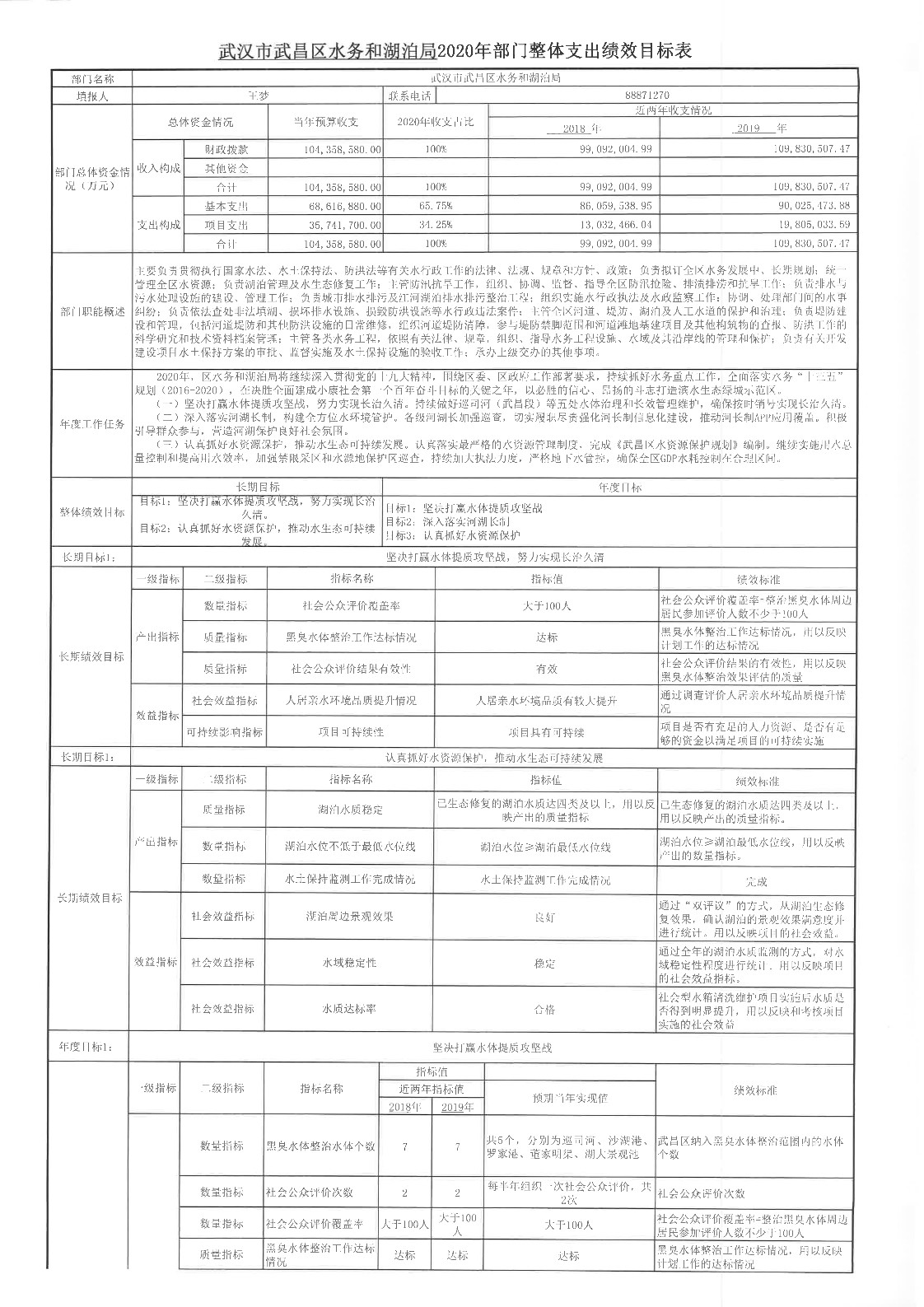 武汉市武昌区水务和湖泊局2020年部门整体支出绩效目标表
