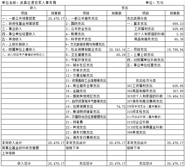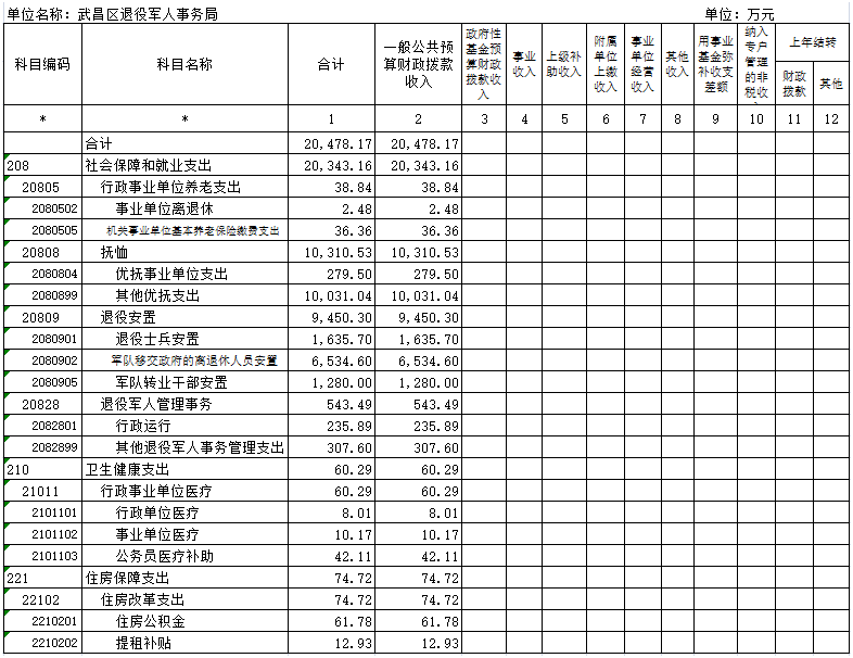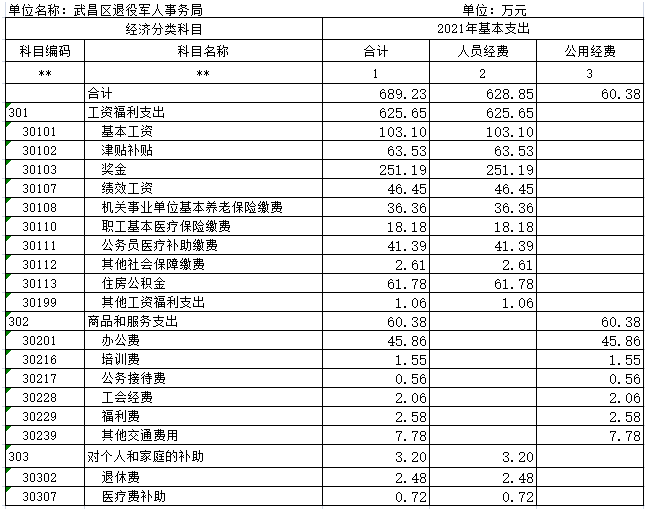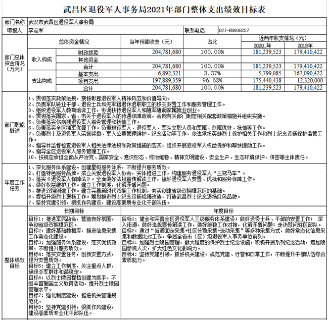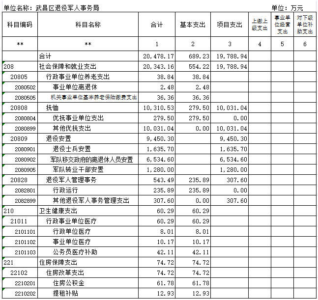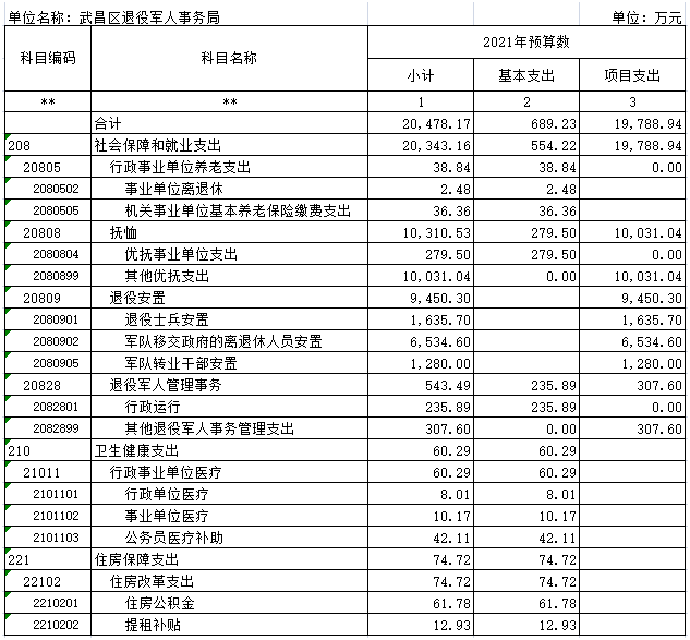 第二部分 武昌区退役军人事务局2021年部门预算表