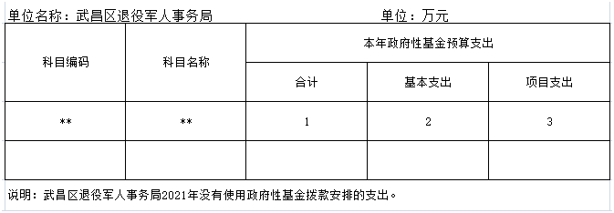 武昌区退役军人事务局2021年没有使用政府性基金预算财政拨款安排的支出。