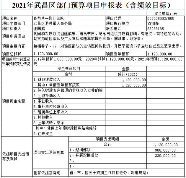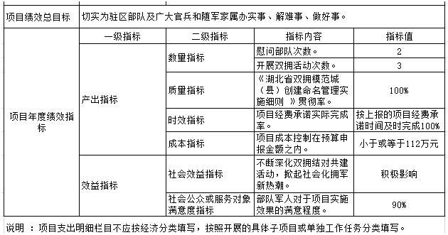 5、春节八一慰问部队经费112.00万元。主要是用于春节、“八一”期间慰问驻区部队,以及与部队开展双拥活动支出;