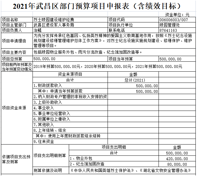 7、烈士陵园建设维护经费50.00万元。主要是用于烈士陵园建设维修支出;
