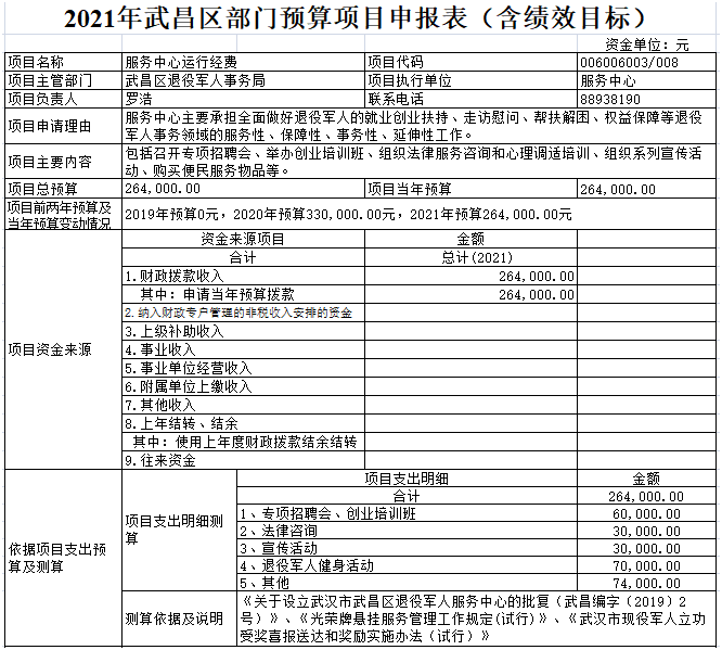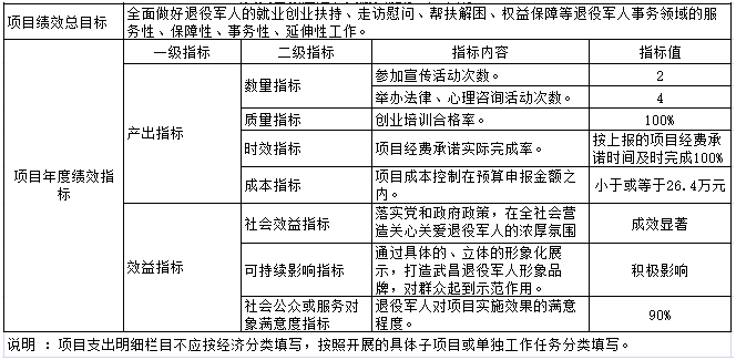9、服务中心运行经费26.40万元。主要是用于武昌区退役军人服务中心开展就业创业扶持、走访慰问、帮扶解困、权益保障等工作支出。