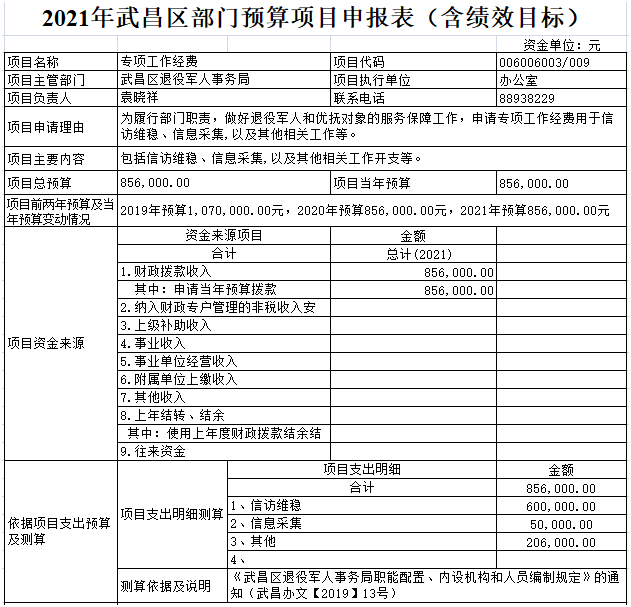 8、专项工作经费85.6万元。主要是用于涉军维稳、退役军人信息采集、聘用人员经费,以及日常管理经费支出;