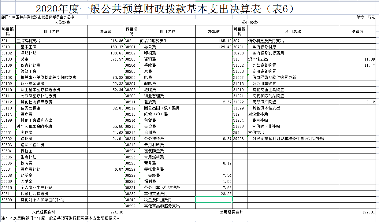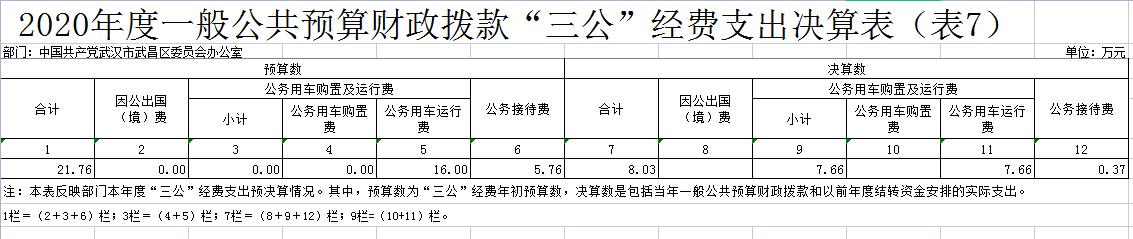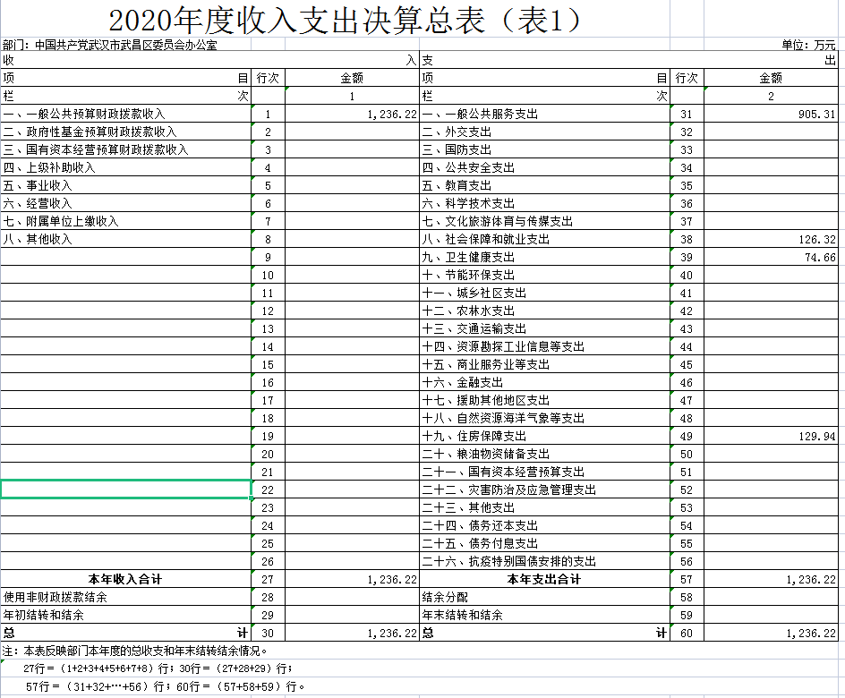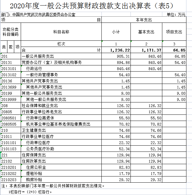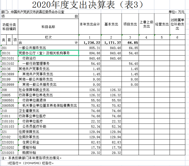 第二部分 中国共产党武汉市武昌区委员会办公室2020年度部门决算表