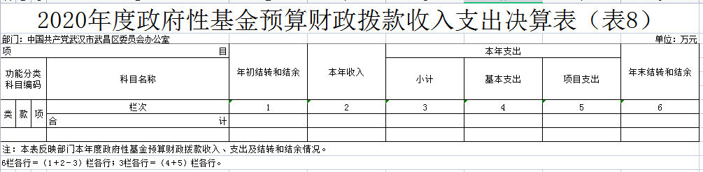 八、政府性基金预算财政拨款收入支出决算表(表8)
