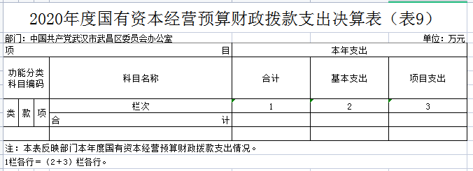 九、国有资本经营预算财政拨款支出决算表(表9)