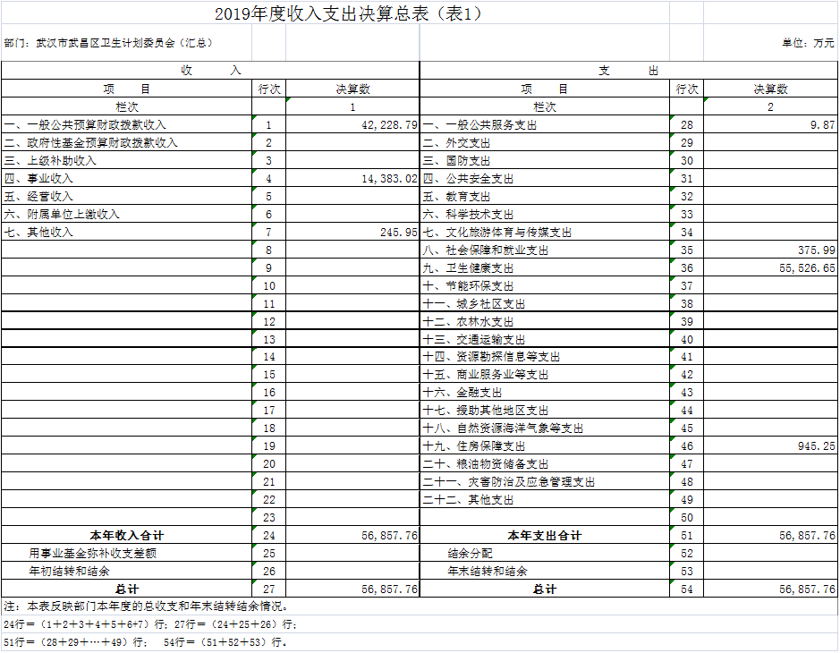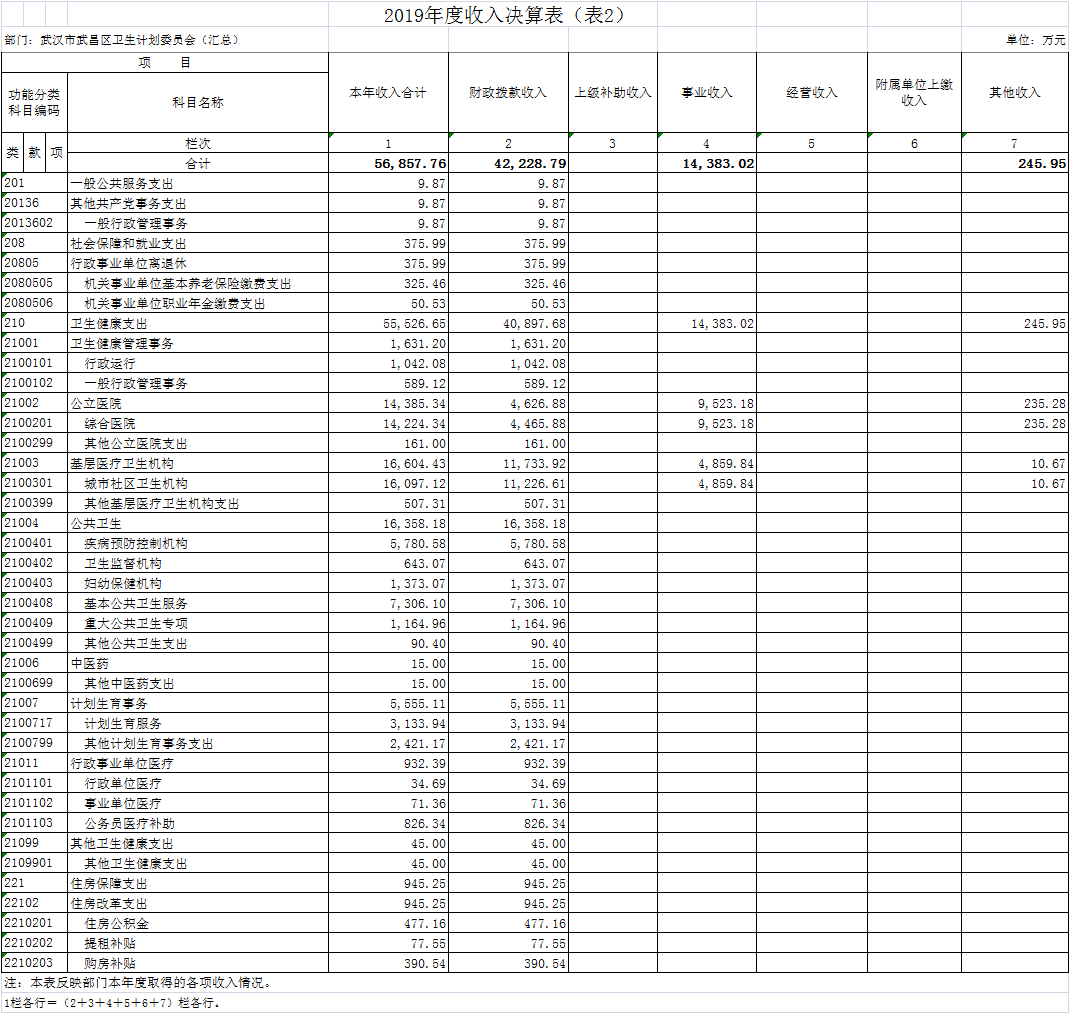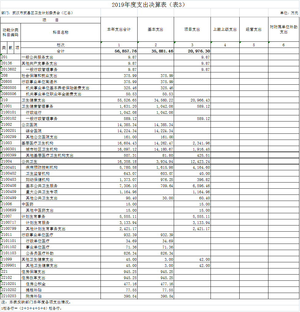 武汉市武昌区卫生计划委员会(汇总)2019年度部门决算表