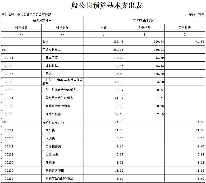 武昌区委宣传部2019年一般公共预算基本支出表