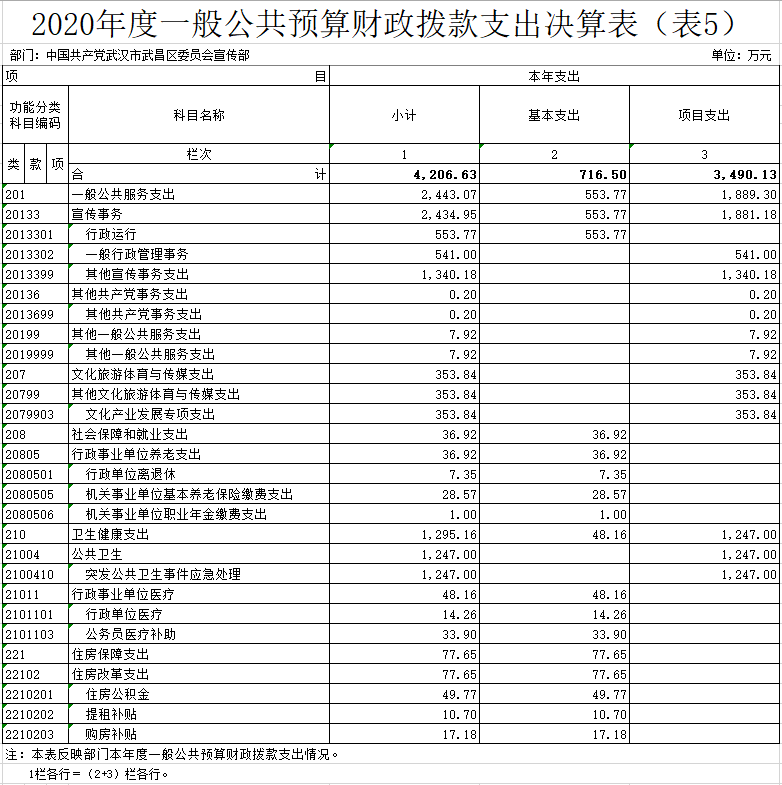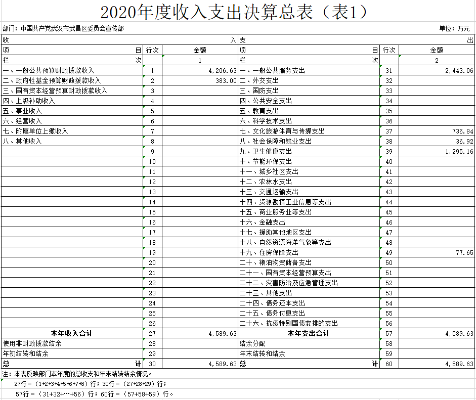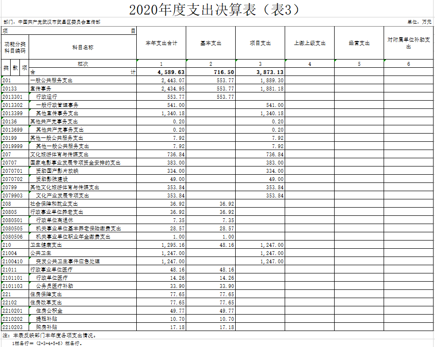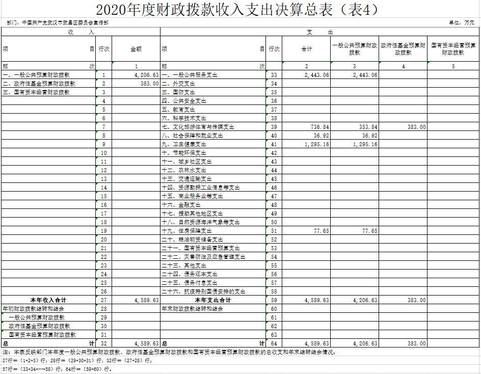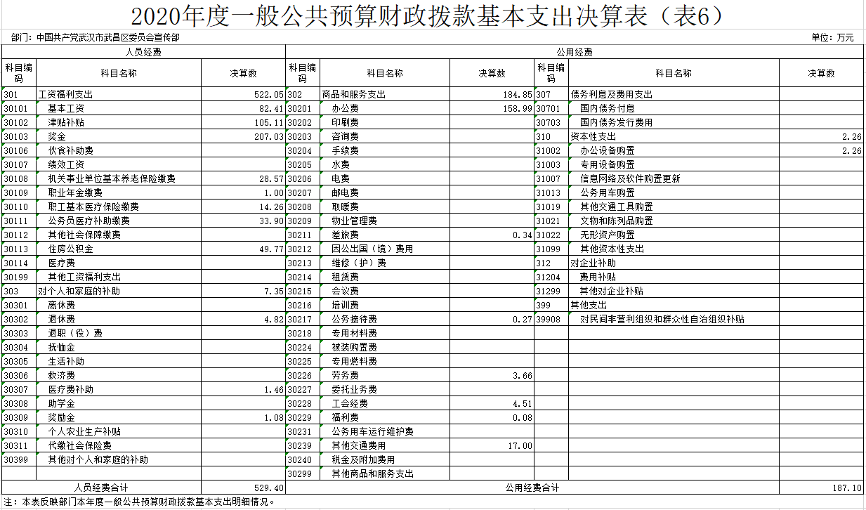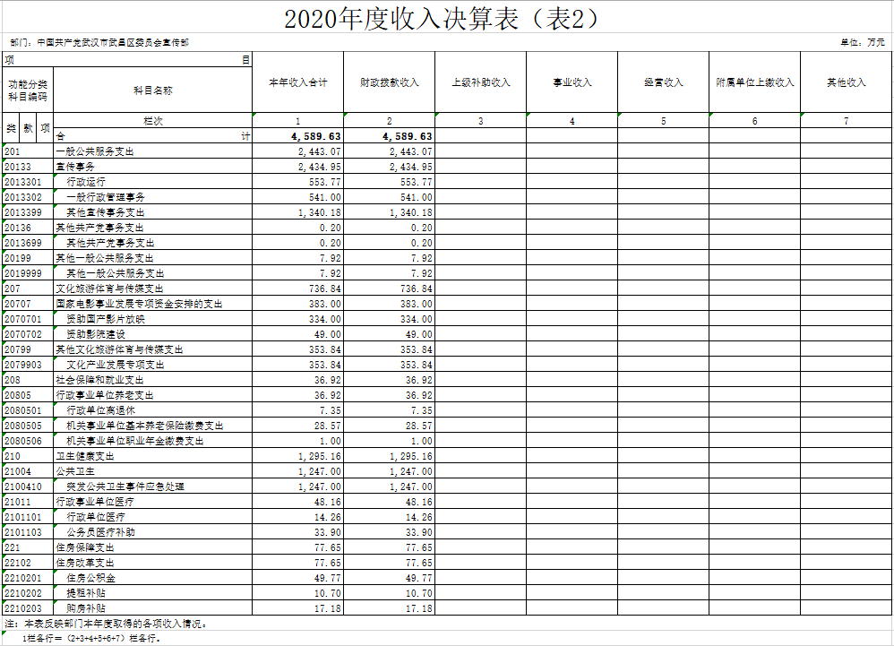 第二部分 中国共产党武汉市武昌区委员会宣传部2020年度部门决算表