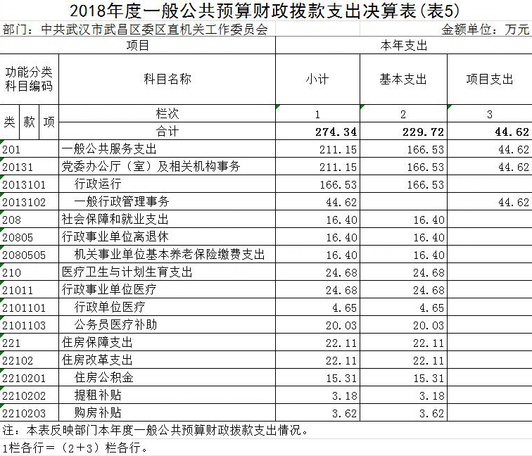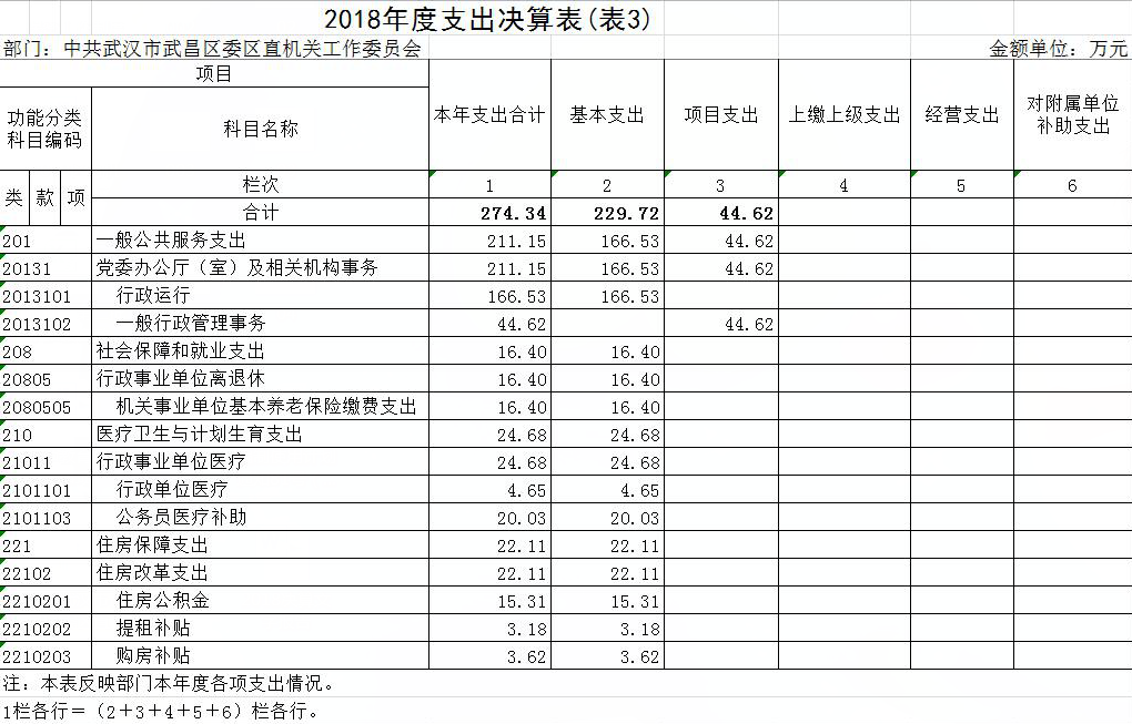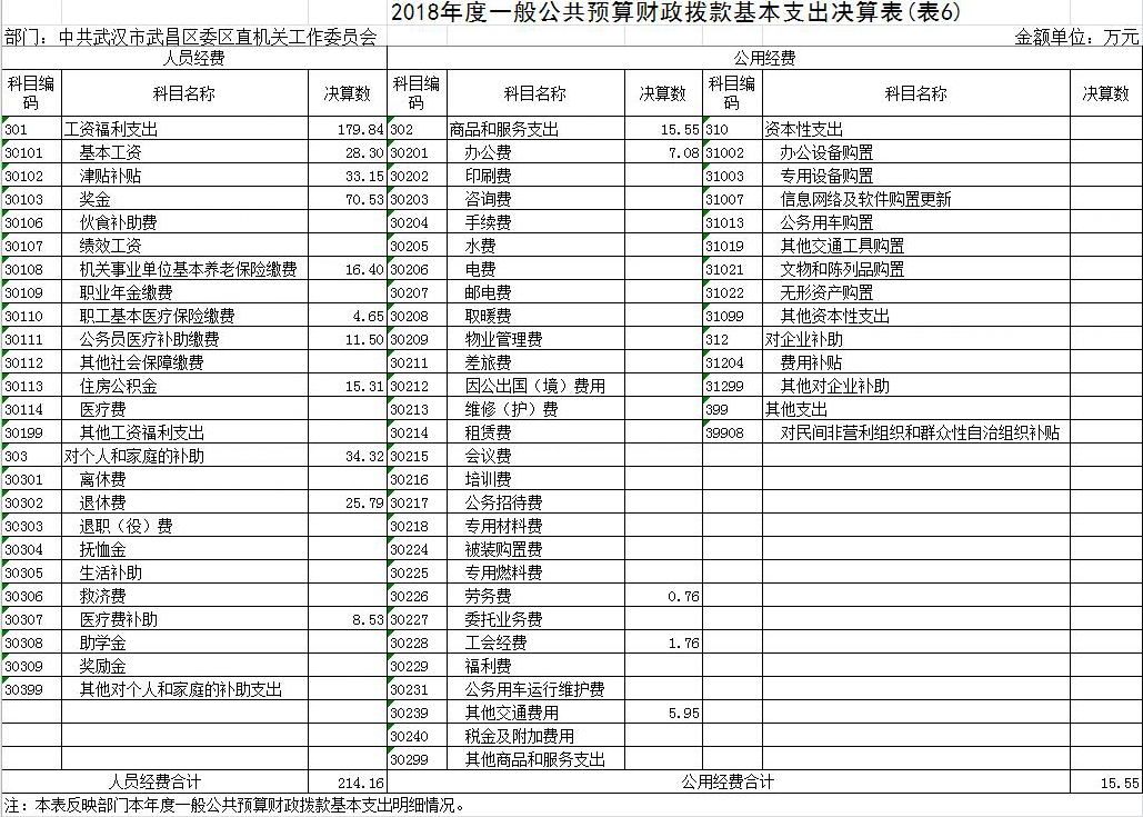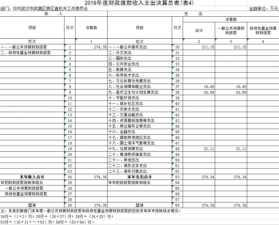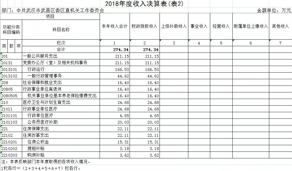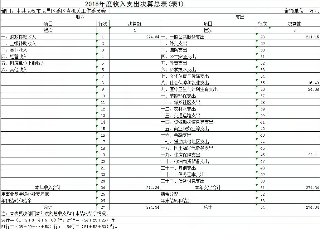 第二部分 中共武汉市武昌区委区直机关工作委员会2018年度部门决算表