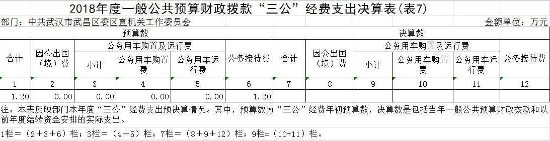 2018年度“三公”经费财政拨款年初预算数为1.20万元,支出决算为0.00万元,完成年初预算的0.00%,其中: