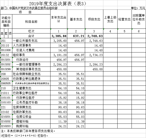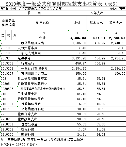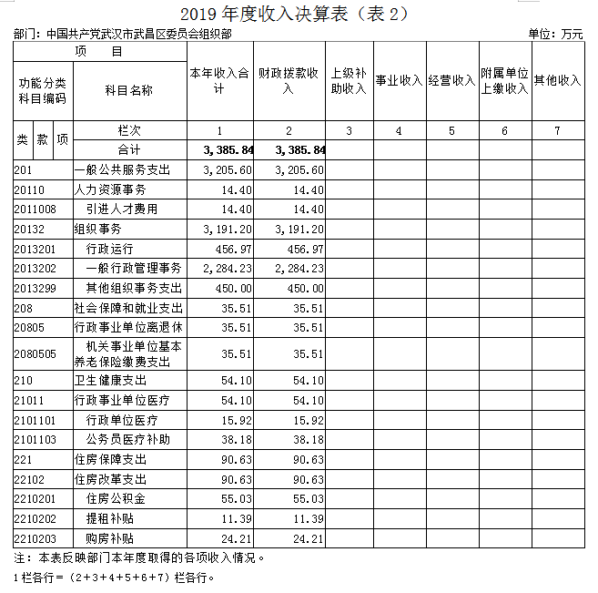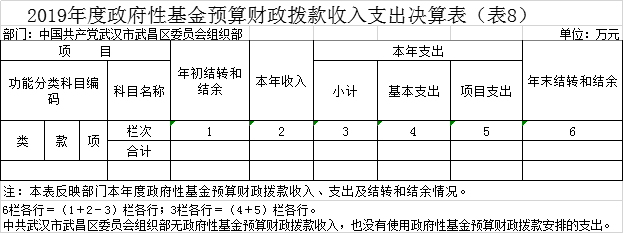 第二部分 中国共产党武汉市武昌区委员会组织部2019年度部门决算表