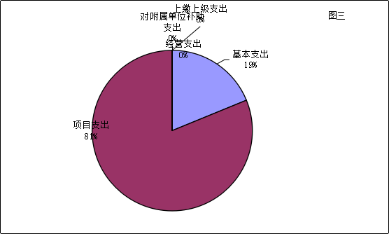 2019年度本年支出合计3,385.84万元。其中:基本支出637.21万元,占本年支出18.82%;项目支出2,748.63万元,占本年支出81.18%;上缴上级支出0.00万元,占本年支出0.00%;经营支出0.00万元,占本年支出0.00%;对附属单位补助支出0.00万元,占本年支出0.00%。