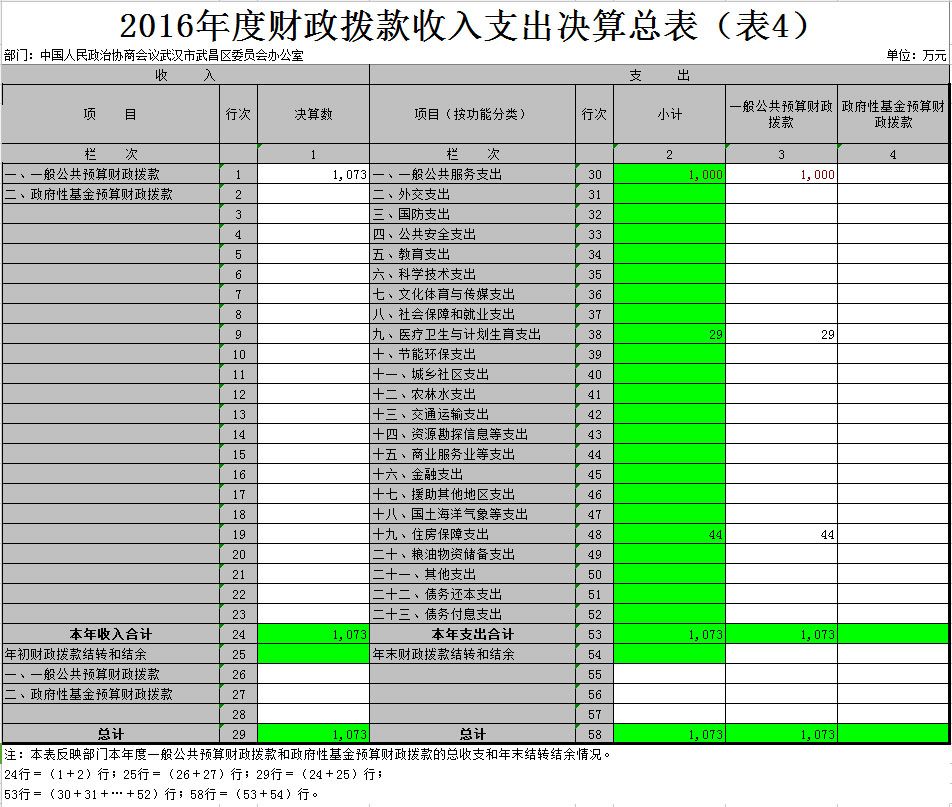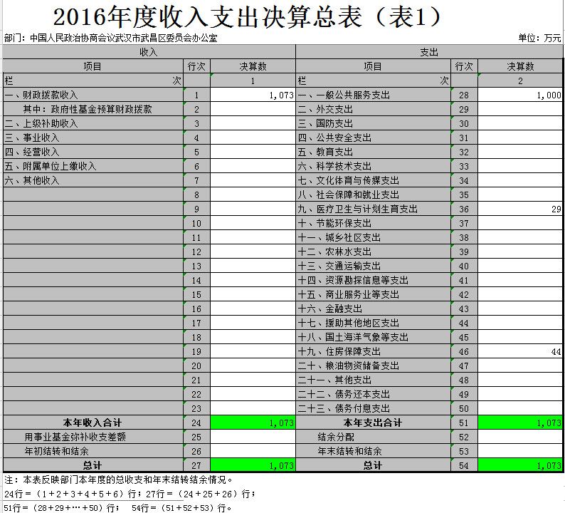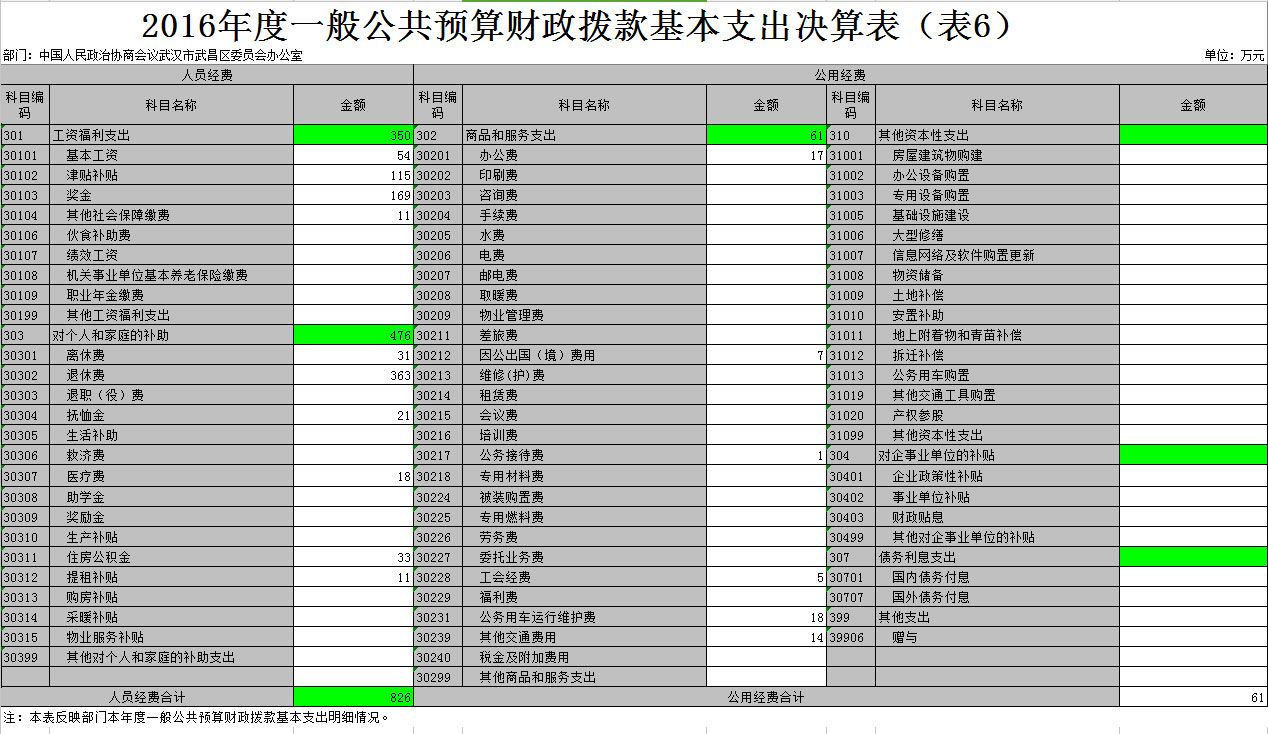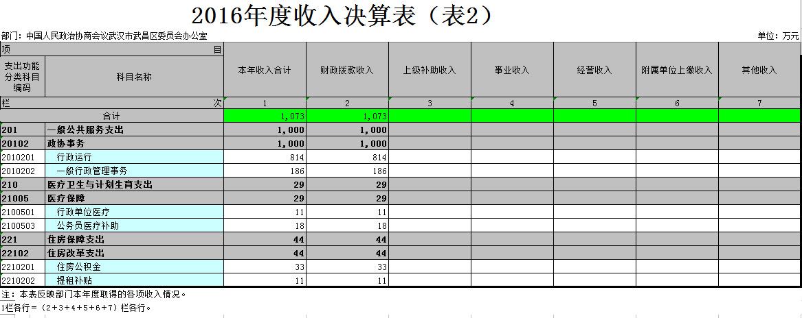 第二部分 中国人民政治协商会议武汉市武昌区委员会办公室2016年度部门决算表