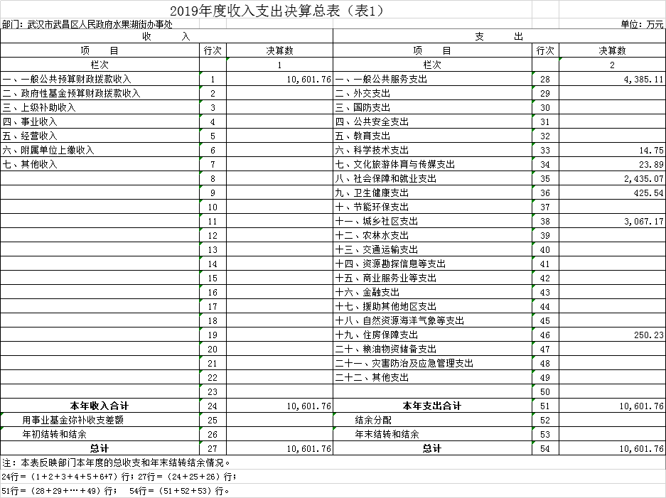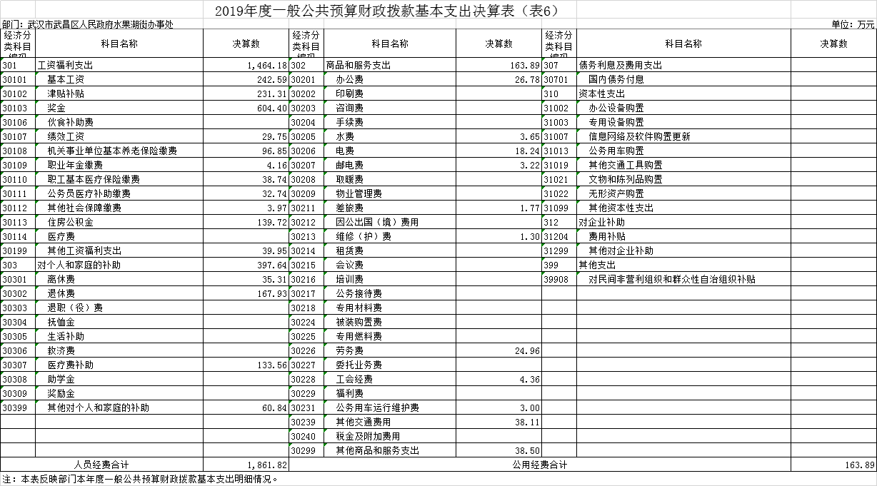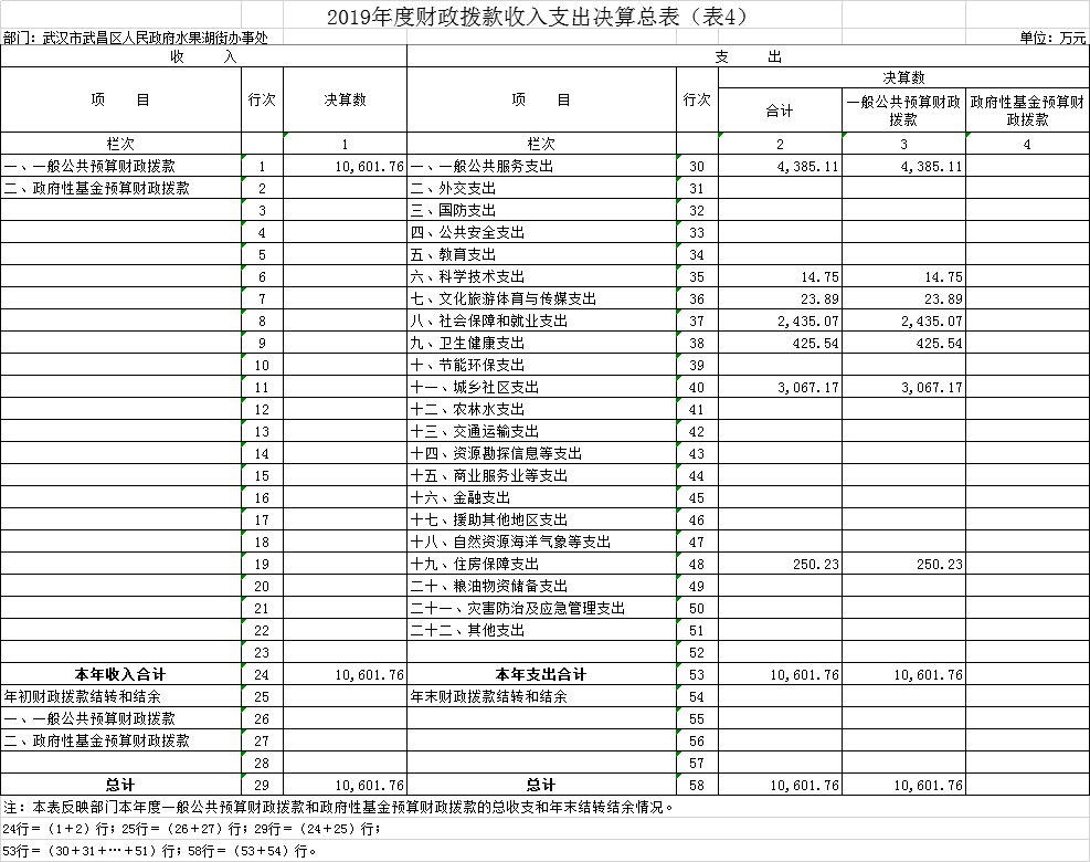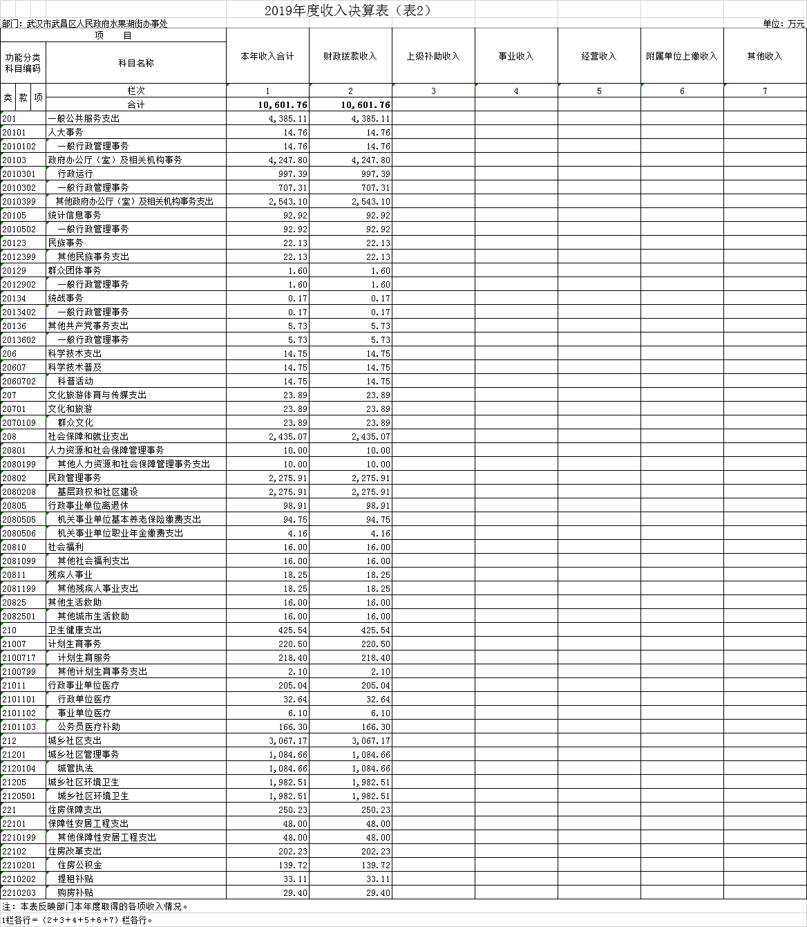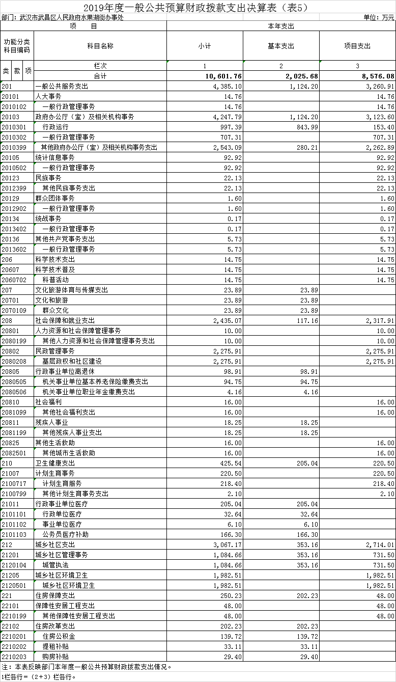 第二部分 武汉市武昌区人民政府水果湖街办事处2019年度部门决算表