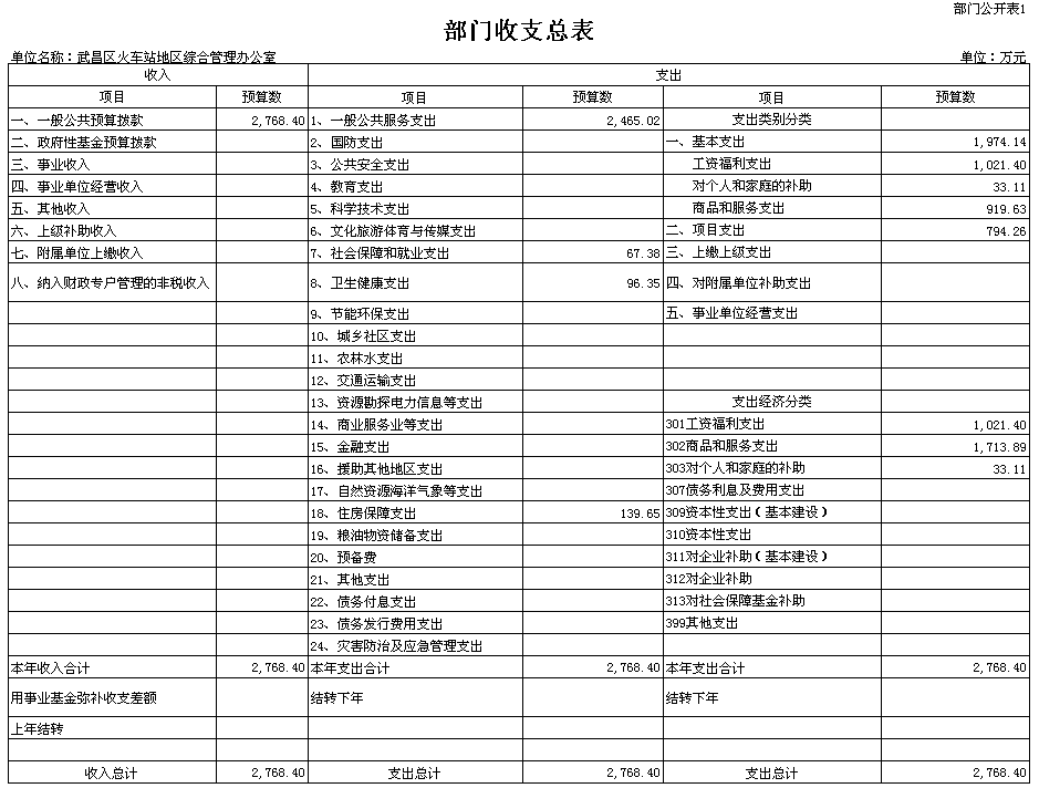2019年武昌火车站地区综合管理办公室部门收支总表