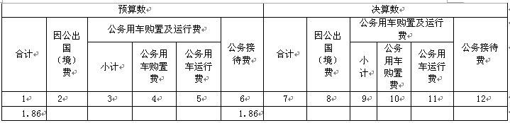 2019年度“三公”经费财政拨款年初预算数为1.86万元,支出决算为0.00万元,完成年初预算的0.00%,其中: