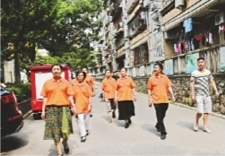 水果湖街东亭社区七宝巡逻队在社区治安巡逻。