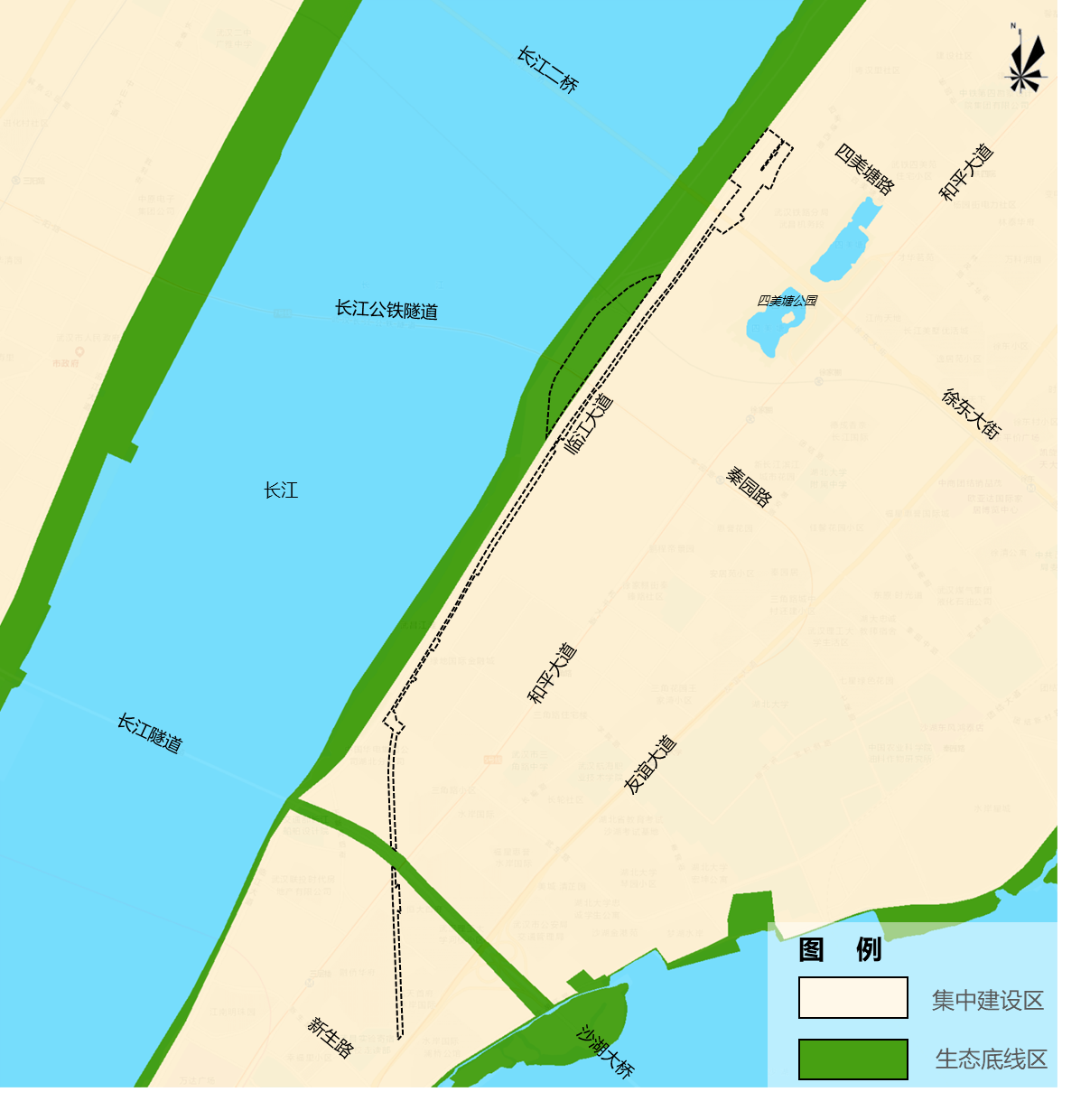按照“功能相当、占补平衡、先补后占”的原则,将武昌区月亮湾城市阳台堤防保护线内用地面积7.32公顷生态底线区修改为城市集中建设区;同时将临江大道以东武昌生态文化长廊沿线用地面积11.40公顷城市集中建设区调整为生态底线区,以实现占补平衡。调整后,生态底线区总面积增加了4.08公顷。