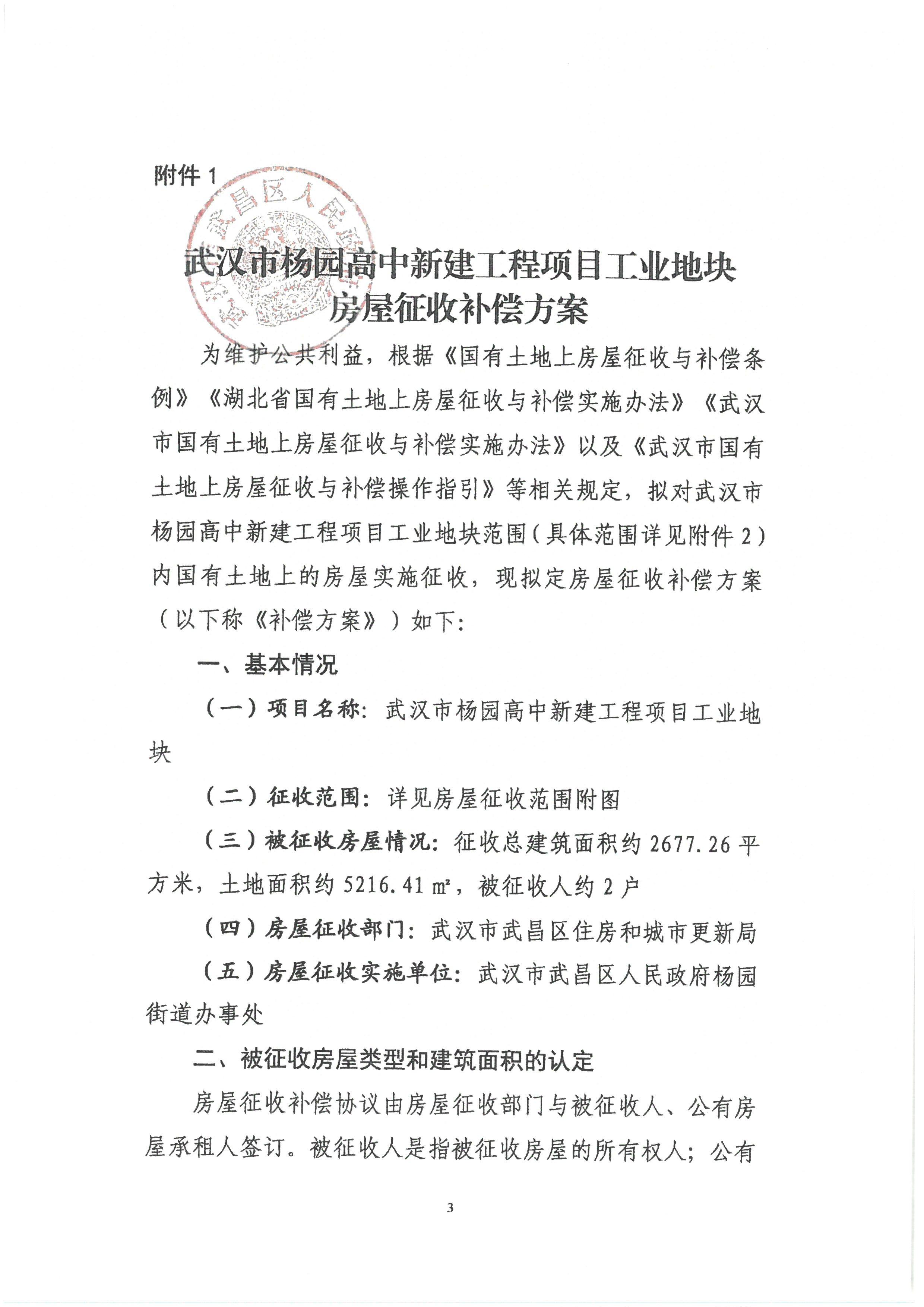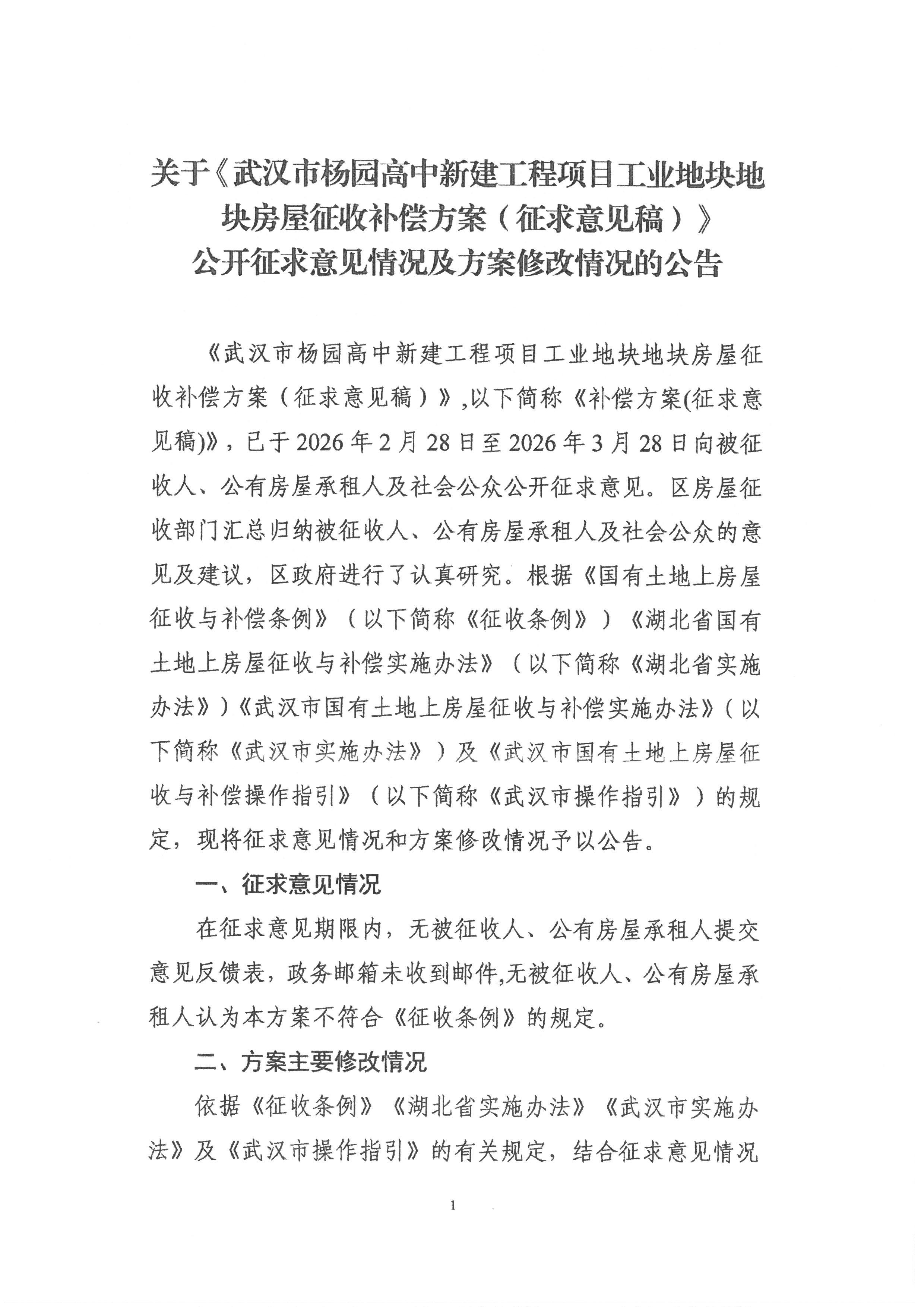 关于《武汉市杨园高中新建工程项目工业地块房屋征收补偿方案(征求意见稿)》公开征求意见情况及方案修改情况的公告