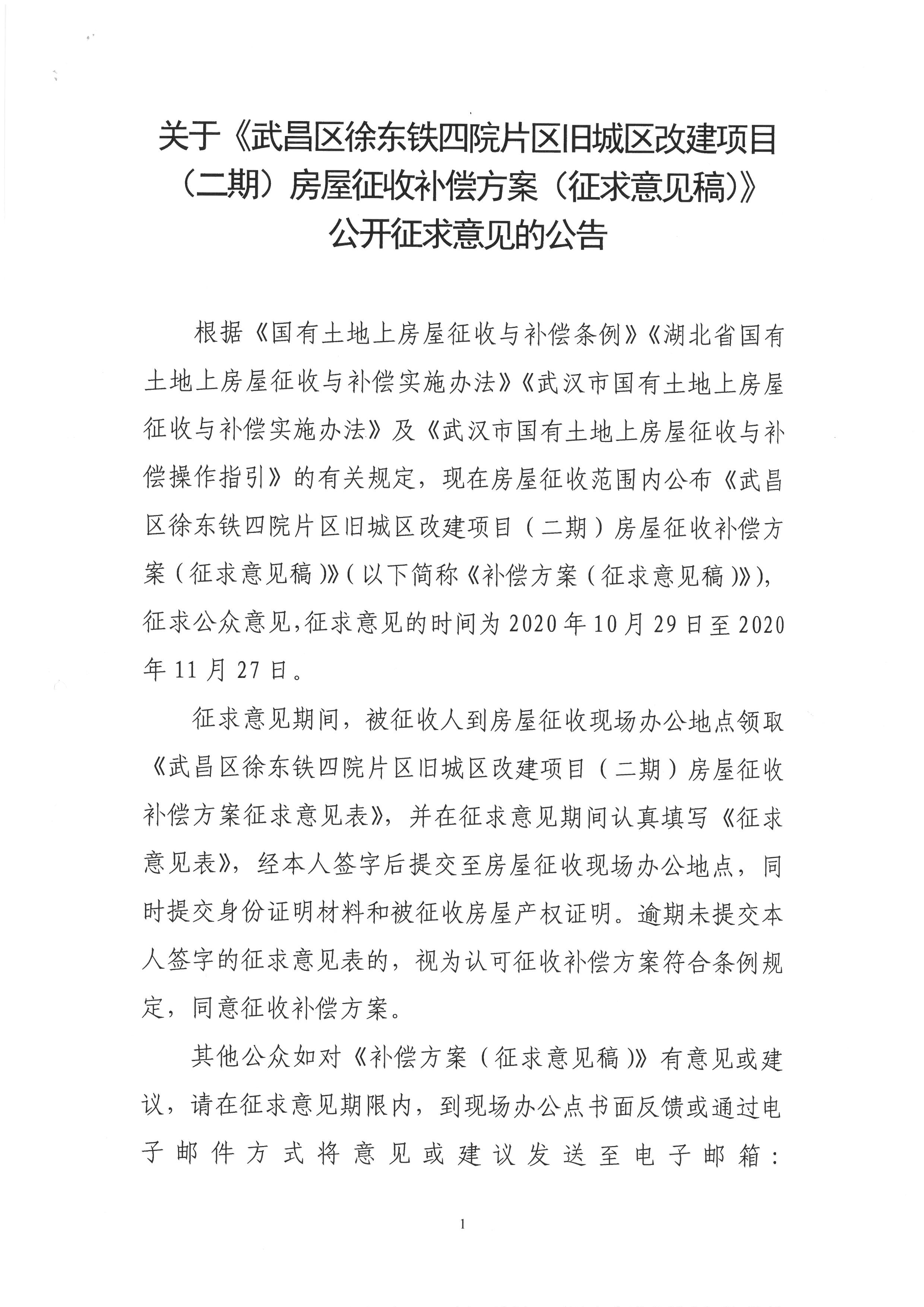 关于《武昌区徐东铁四院片区旧城区改建项目(二期)房屋征收补偿方案(征求意见稿)》公开征求意见的公告
