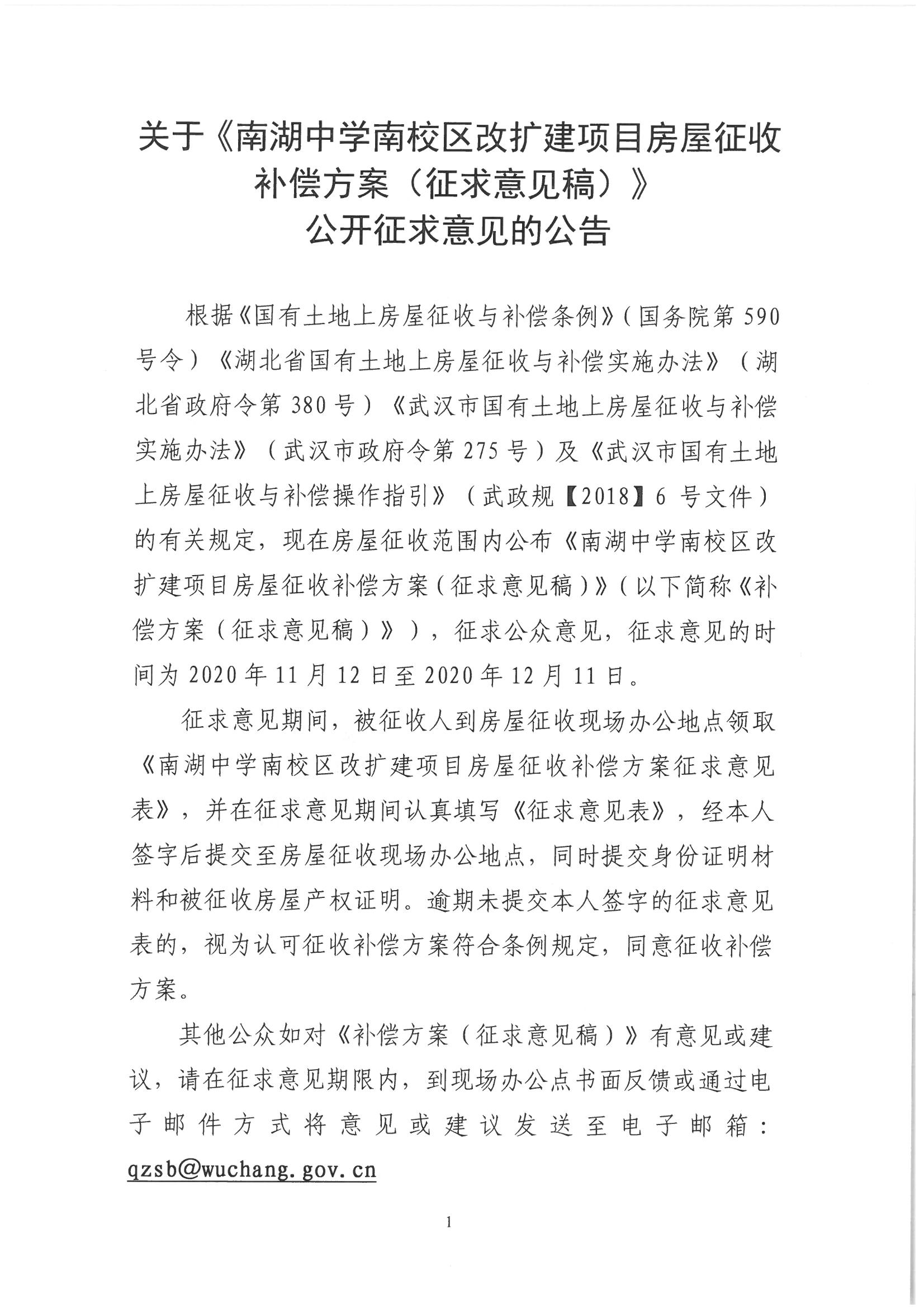 关于《南湖中学南校区改扩建项目房屋征收补偿方案(征求意见稿)》公开征求意见的公告