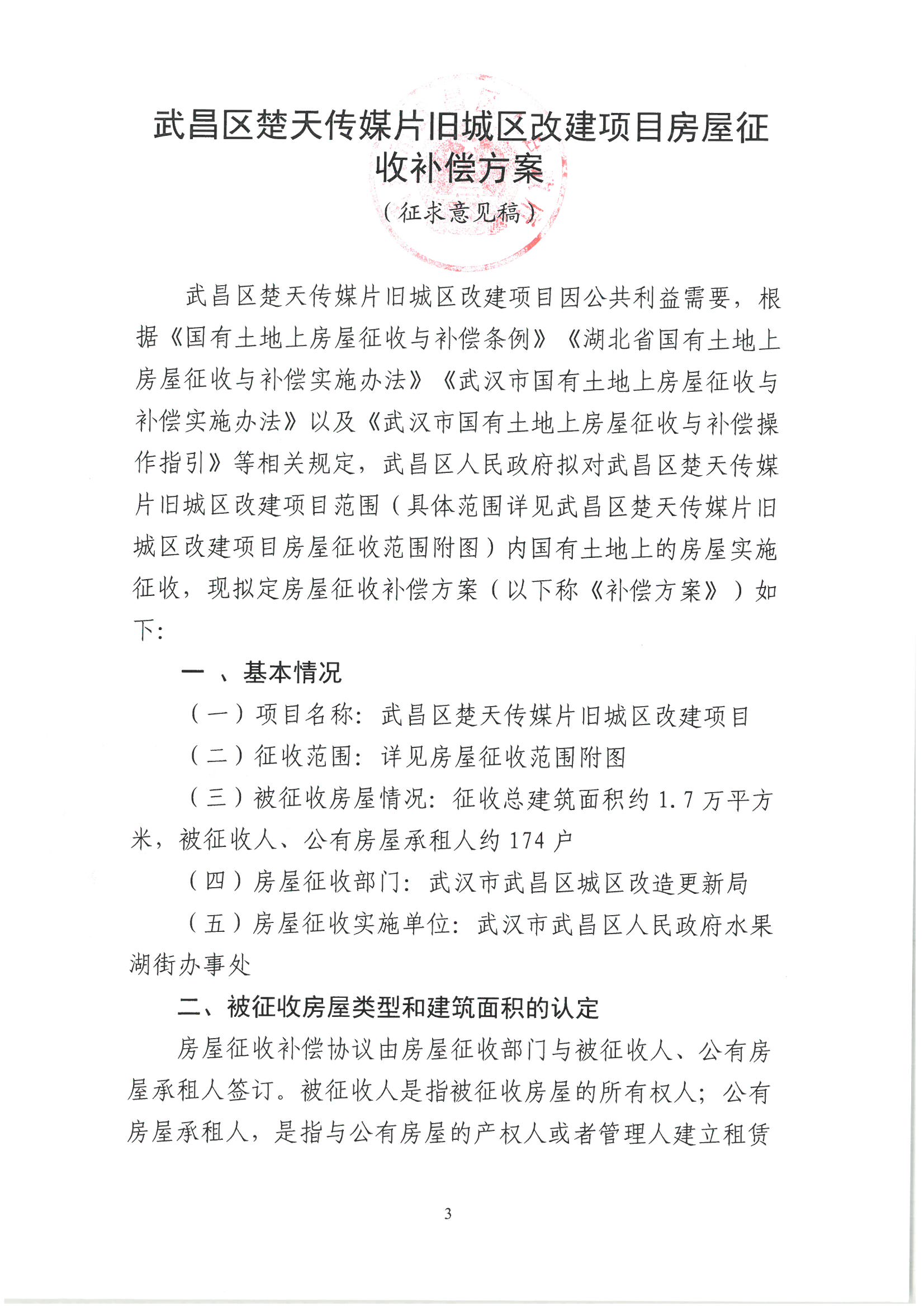 关于《武昌区楚天媒体片旧城区改建项目房屋征收补偿方案(征求意见稿)》公开征求意见的公告