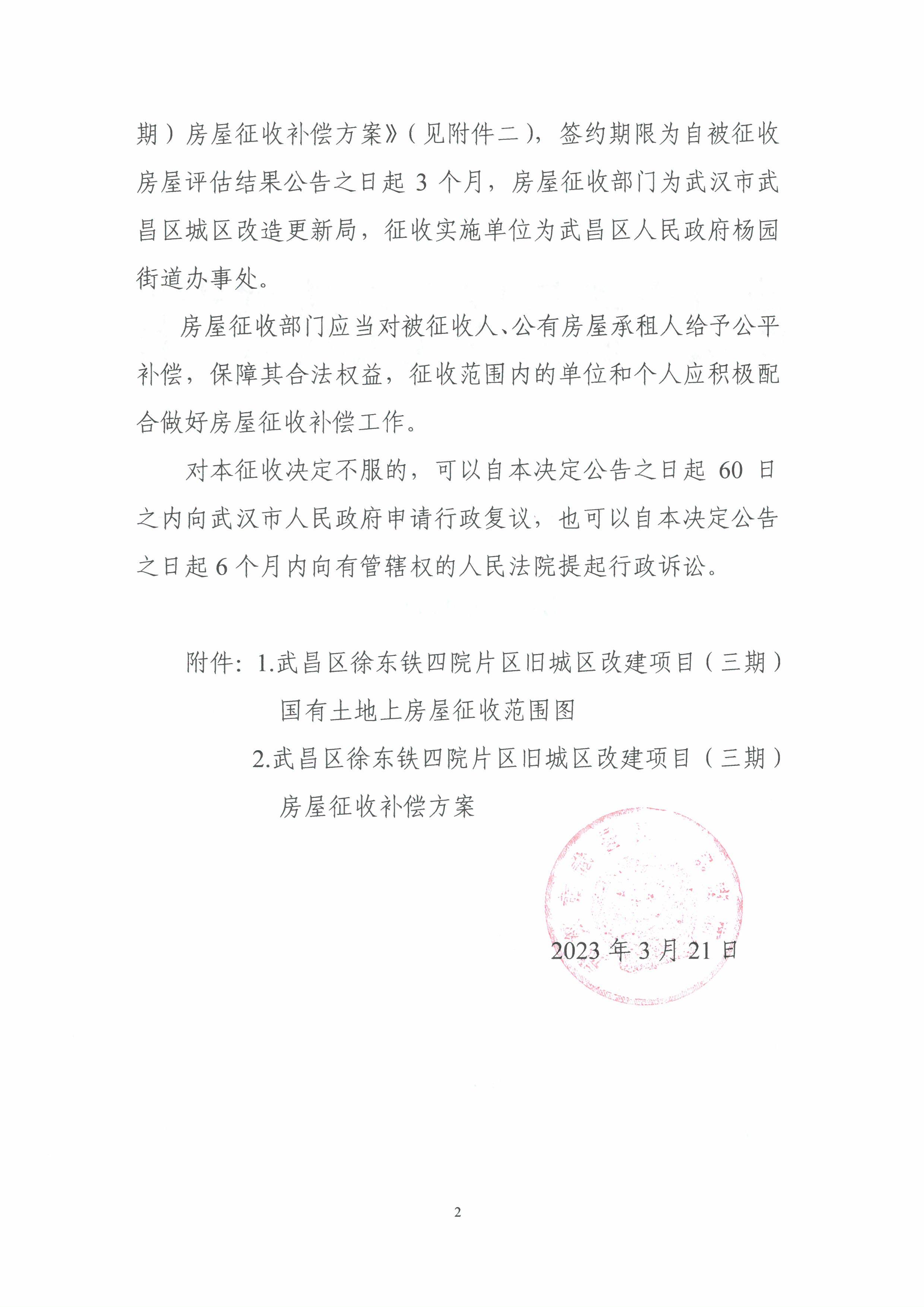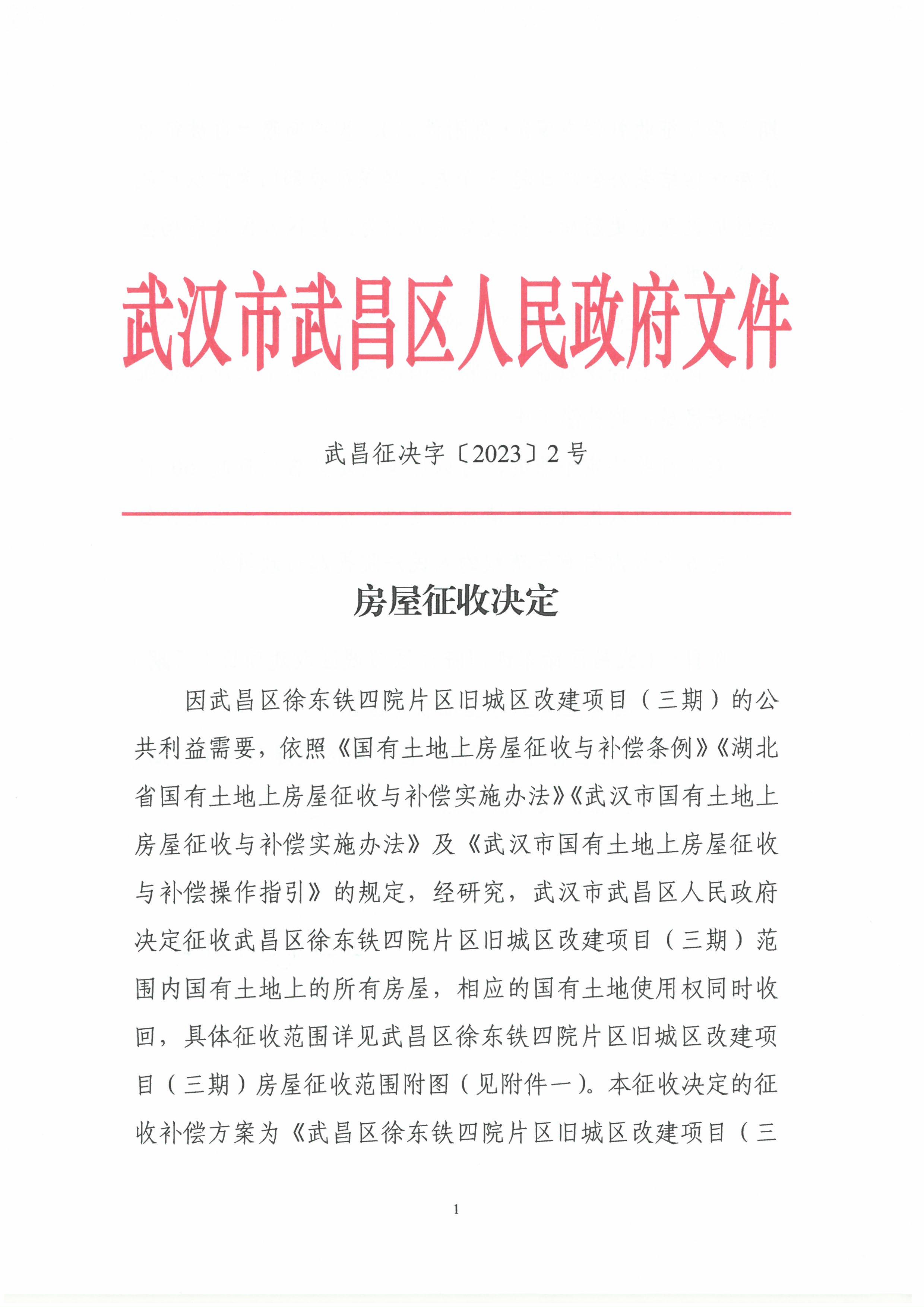 房屋征收决定(武昌区徐东铁四院片区旧城区改建项目(三期))
