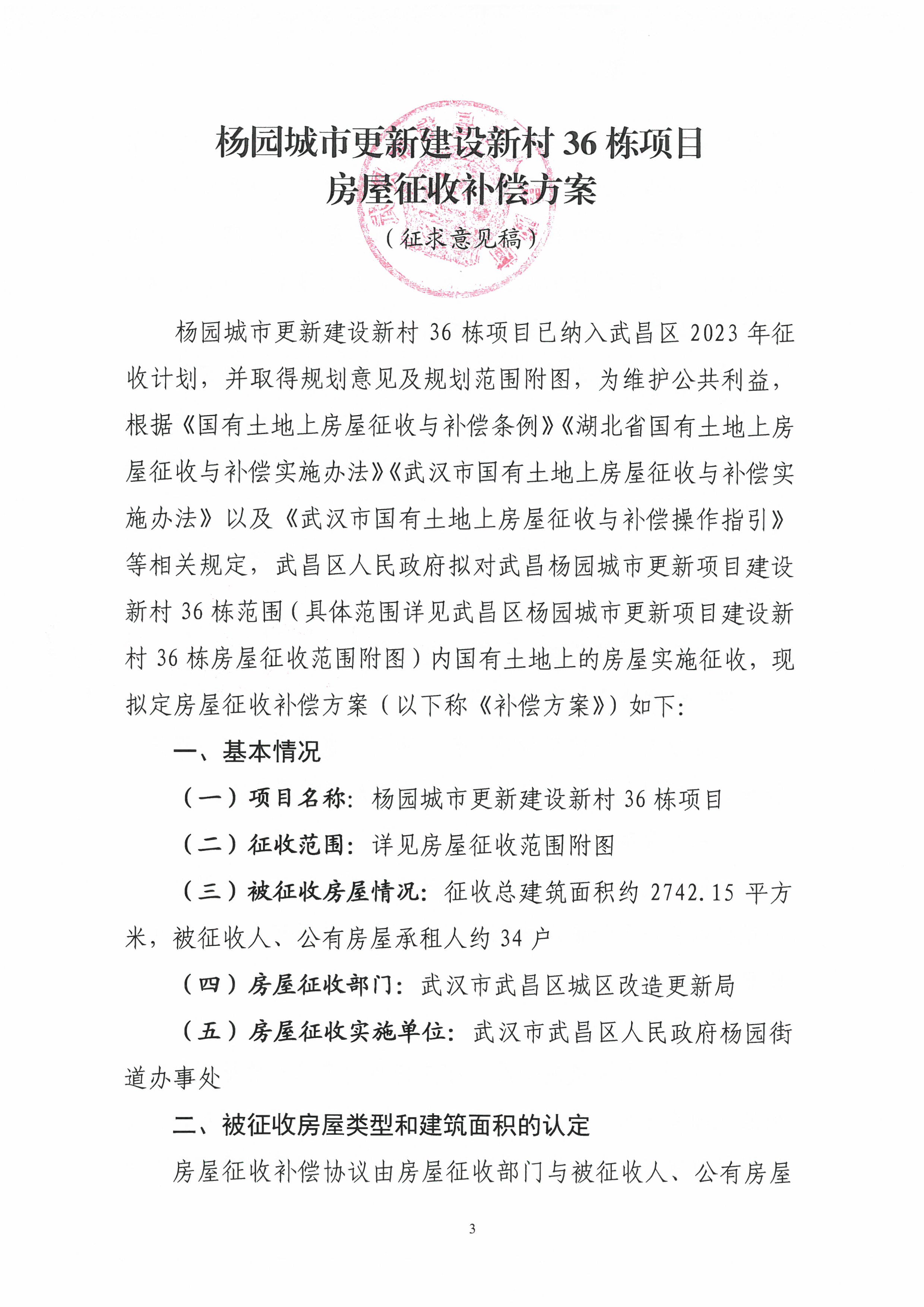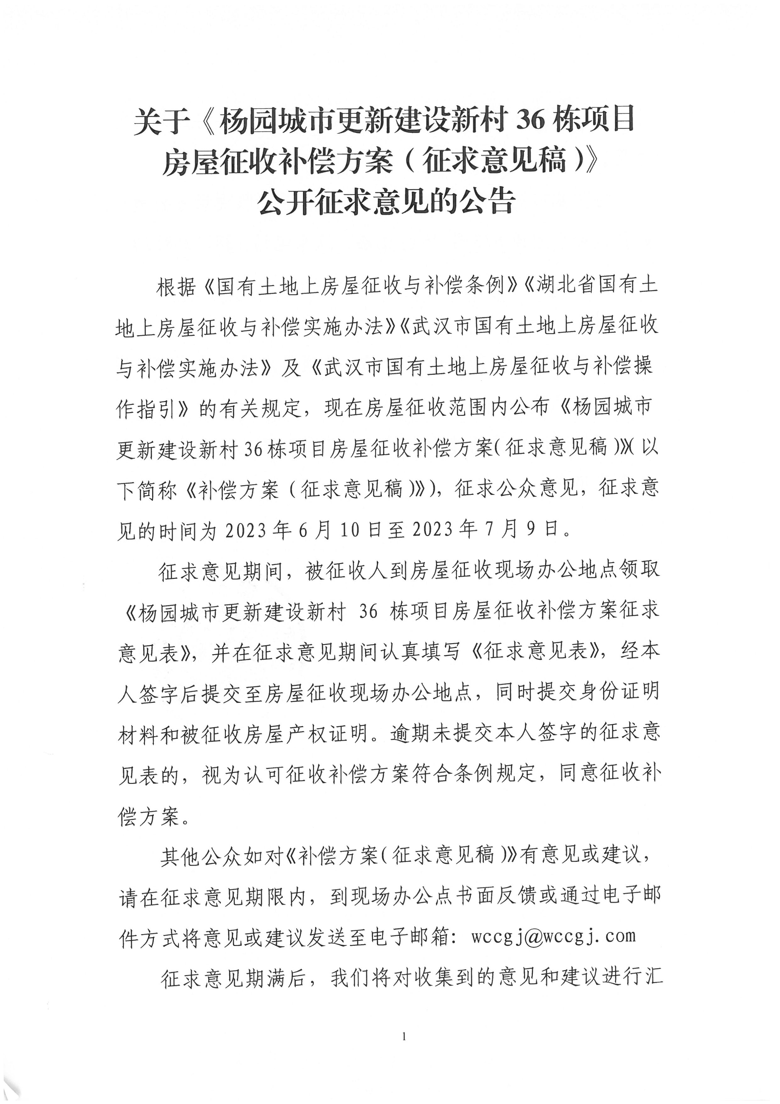 关于《杨园城市更新建设新村36栋项目房屋征收补偿方案(征求意见稿)》公开征求意见的公告