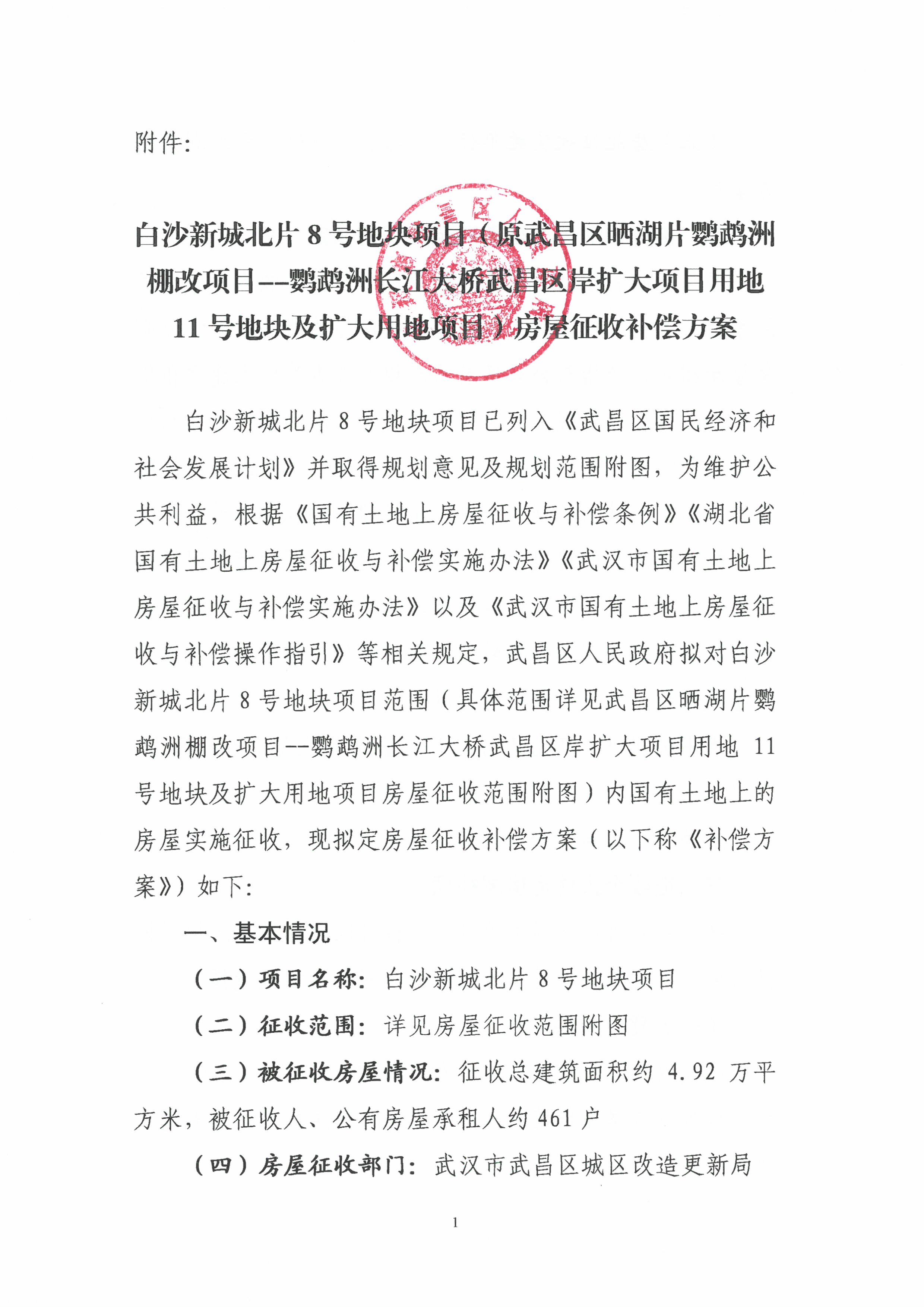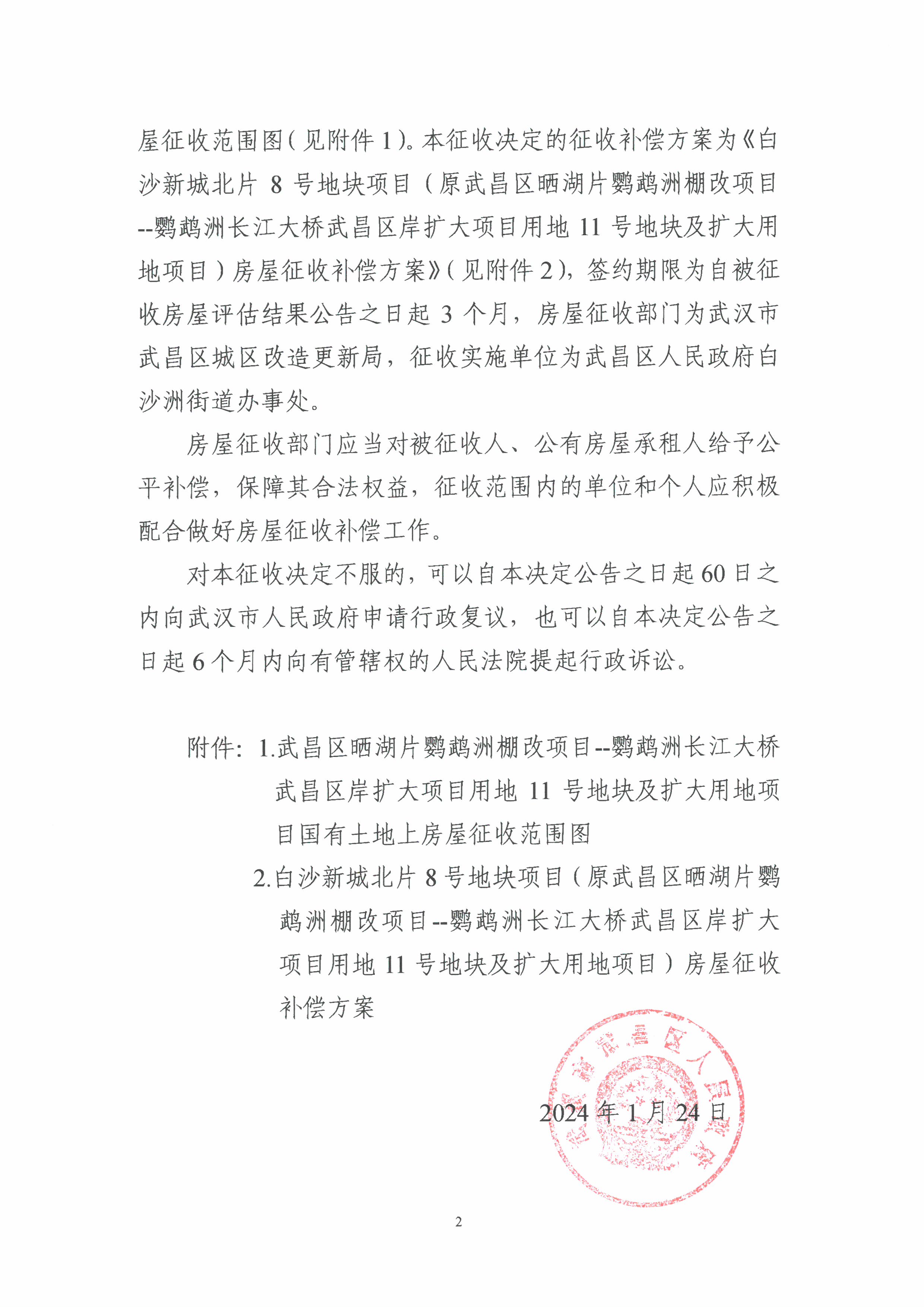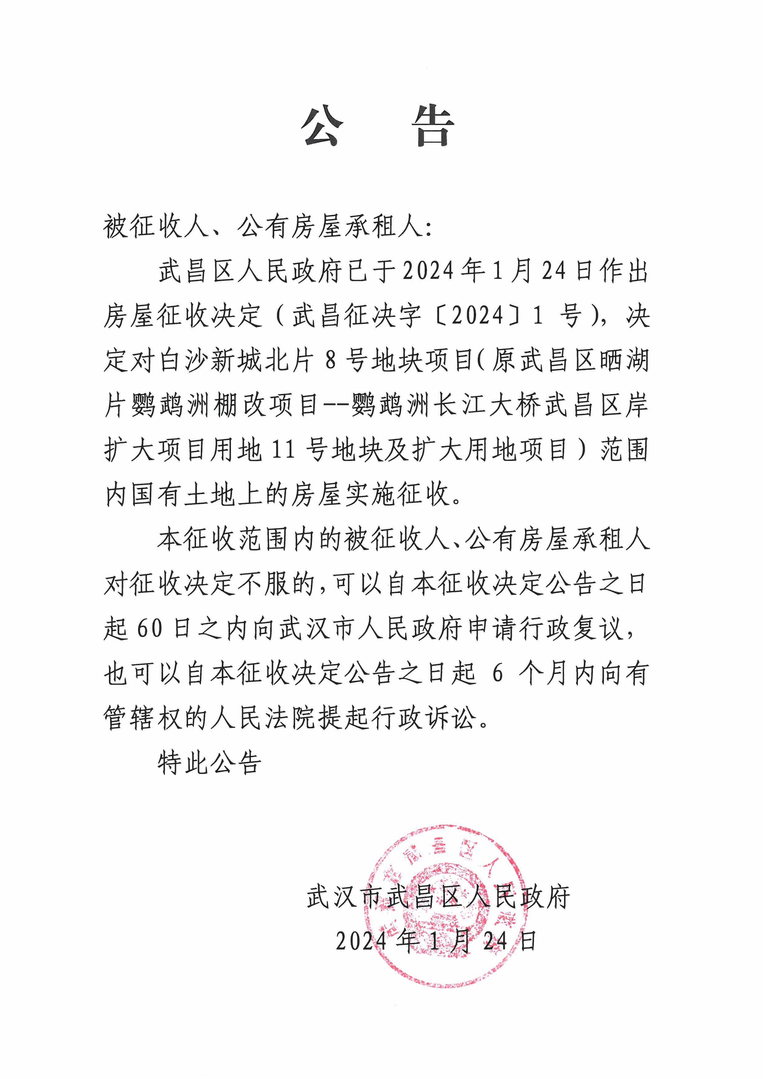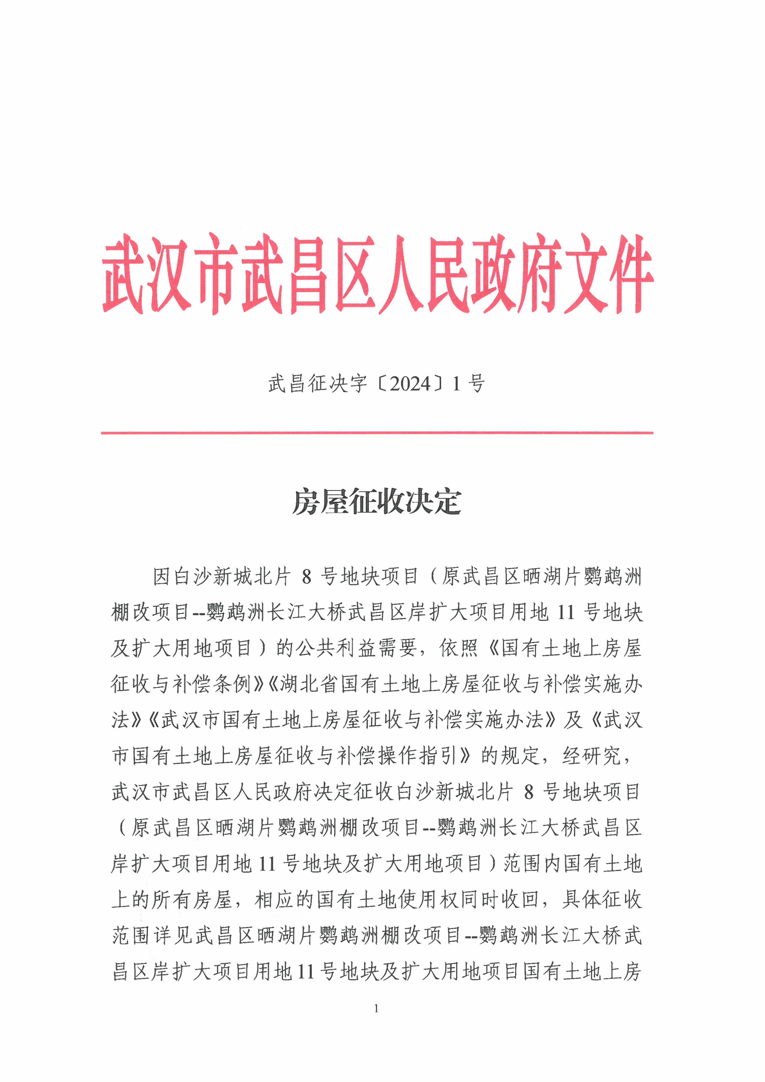 房屋征收决定【白沙新城北片8号地块项目(原武昌区晒湖片鹦鹉洲棚改项目——鹦鹉洲长江大桥武昌区委扩大项目用地11号地块及扩大用地项目)】