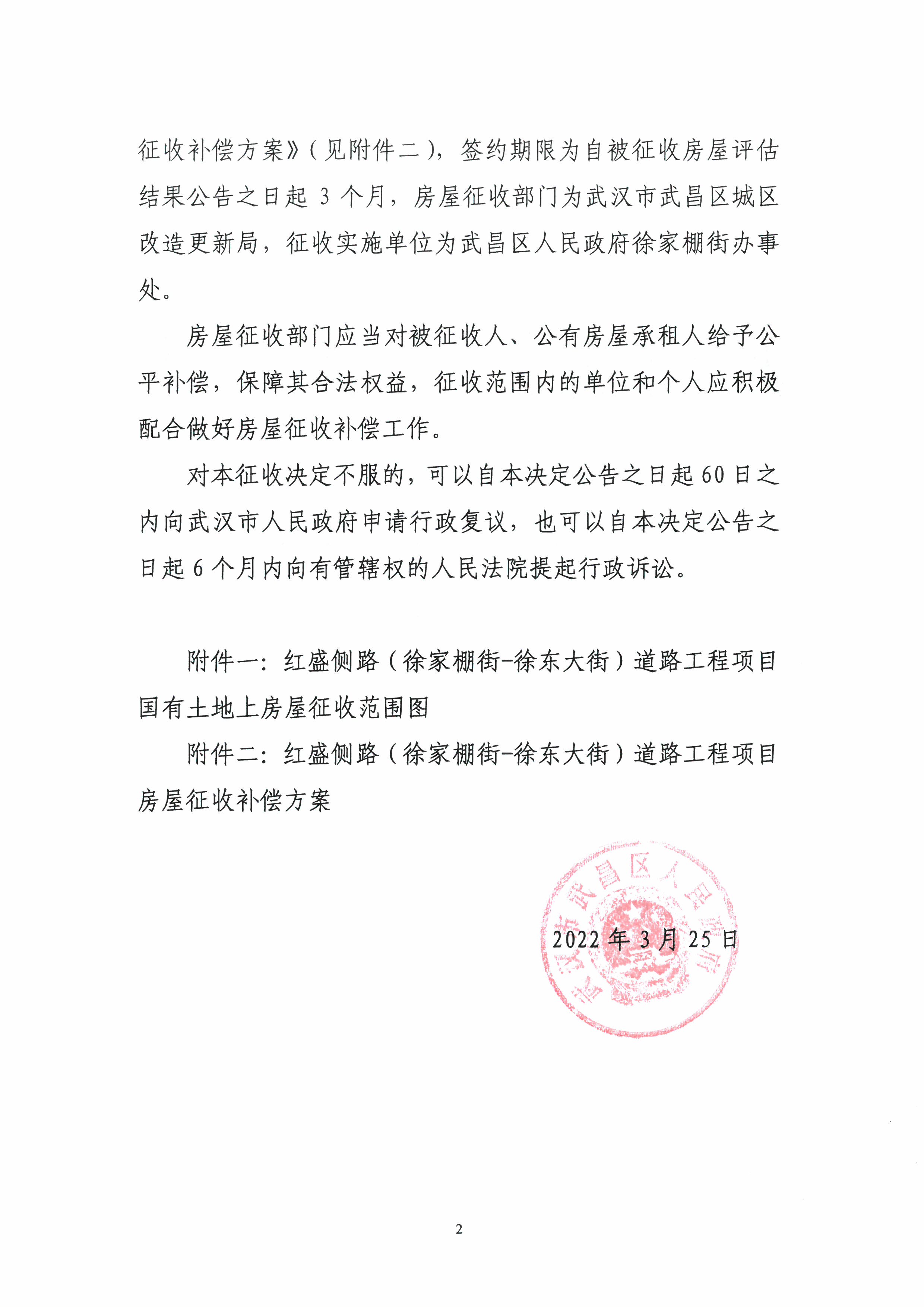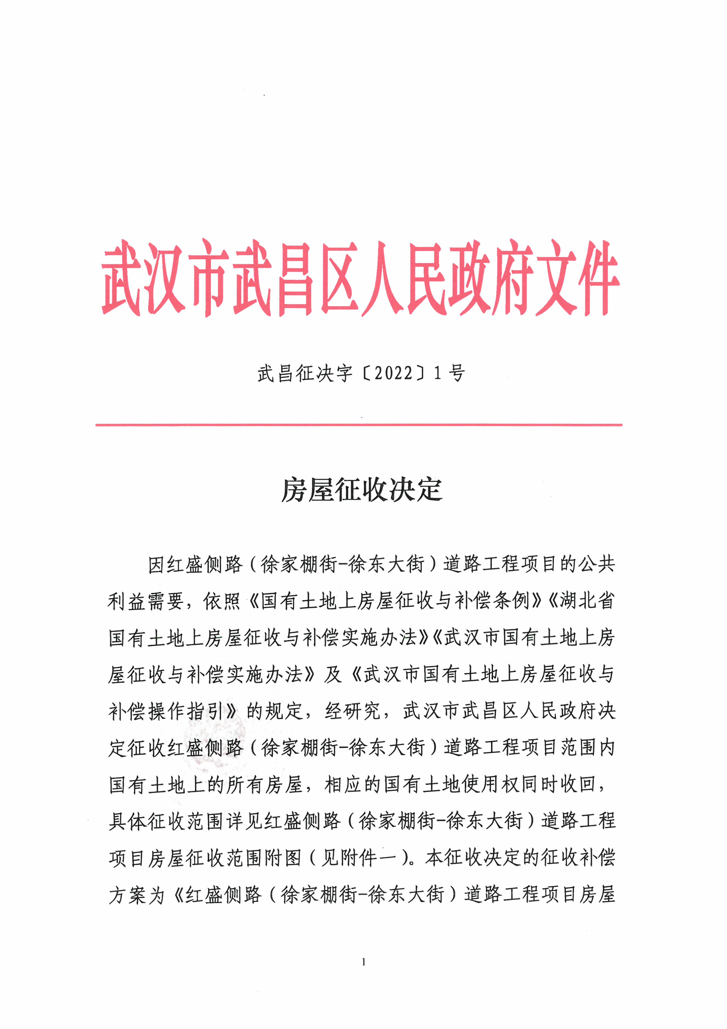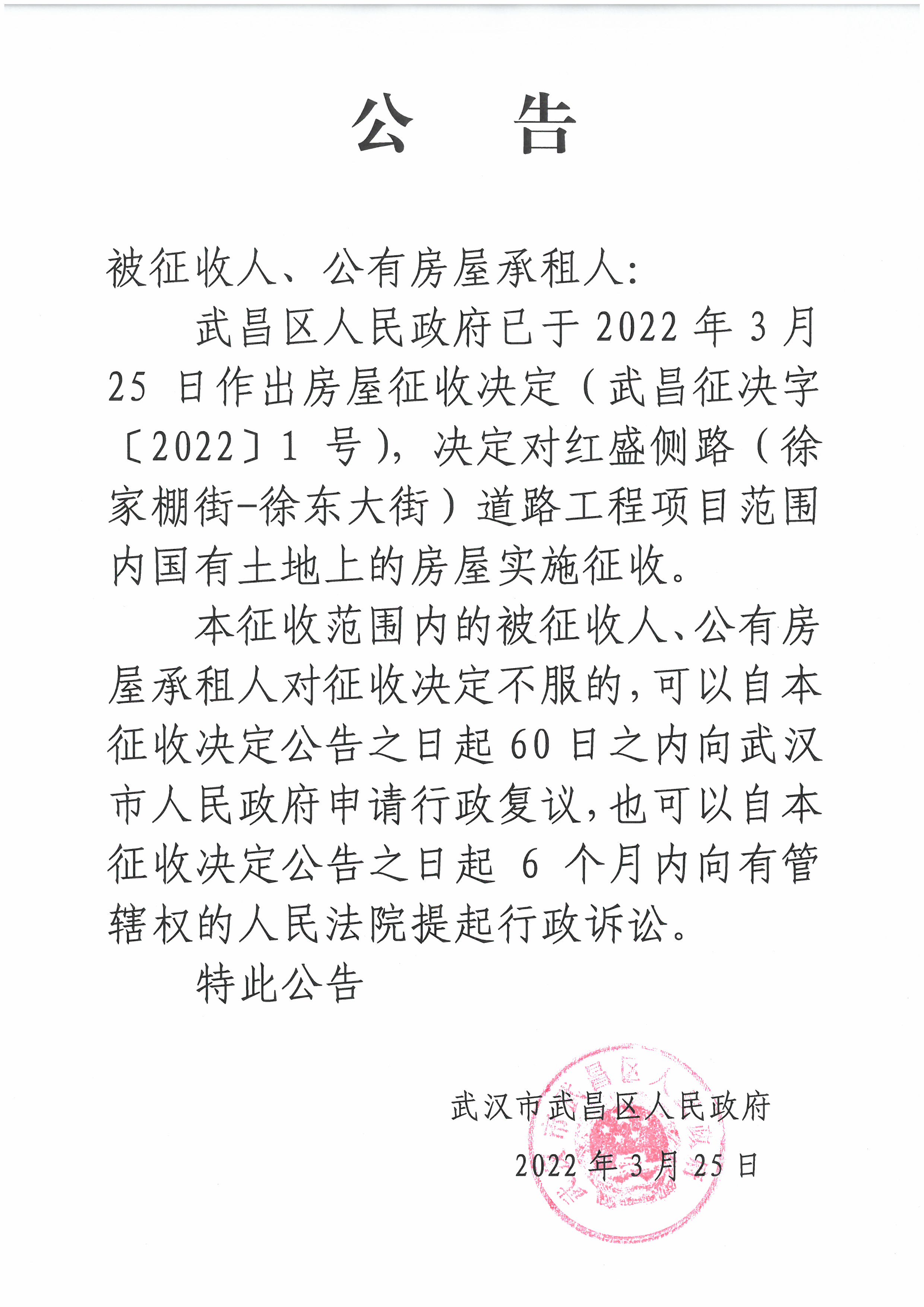 红盛侧路(徐家棚街——徐东大街)道路工程项目房屋征收决定