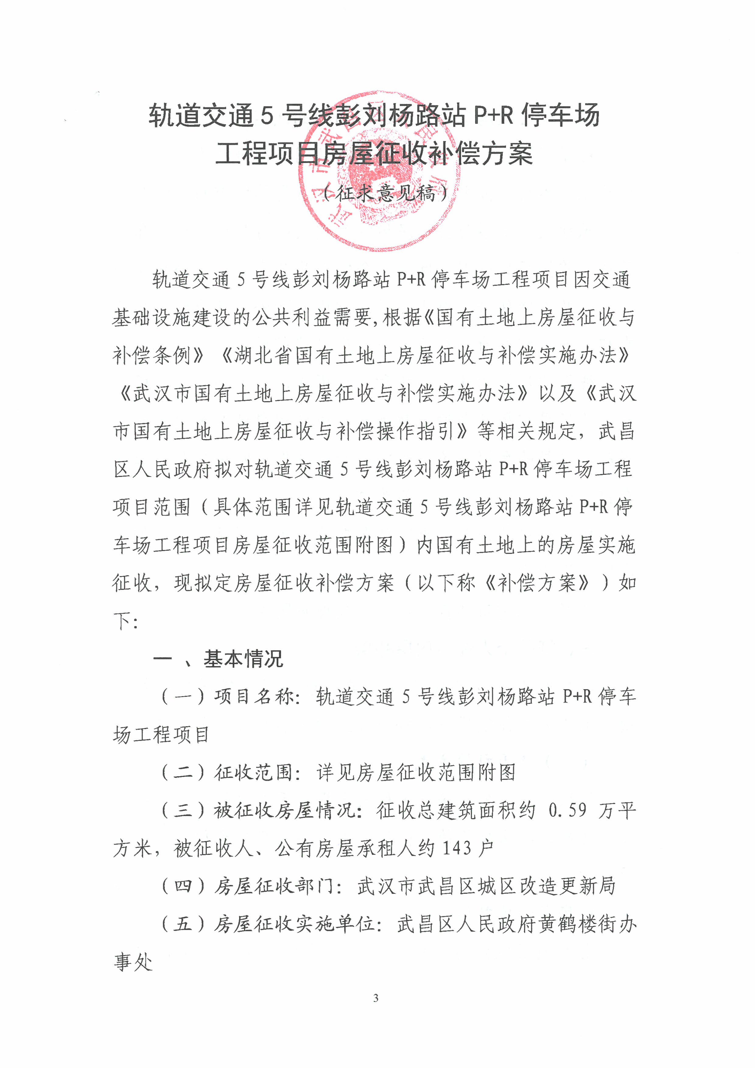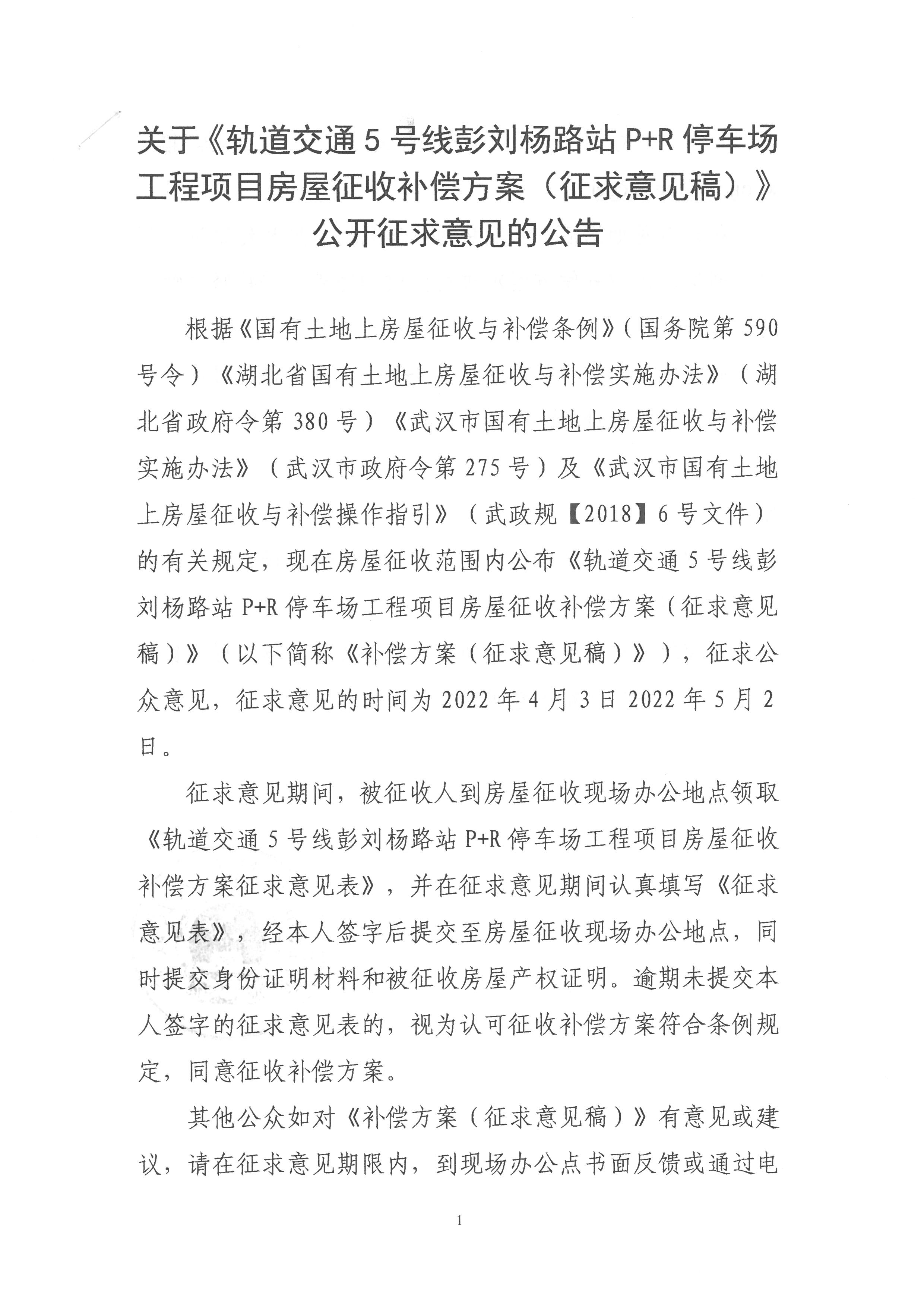 关于《轨道交通5号线彭刘杨路站P+R停车场工程项目房屋征收补偿方案(征求意见稿)》公开征求意见的公告