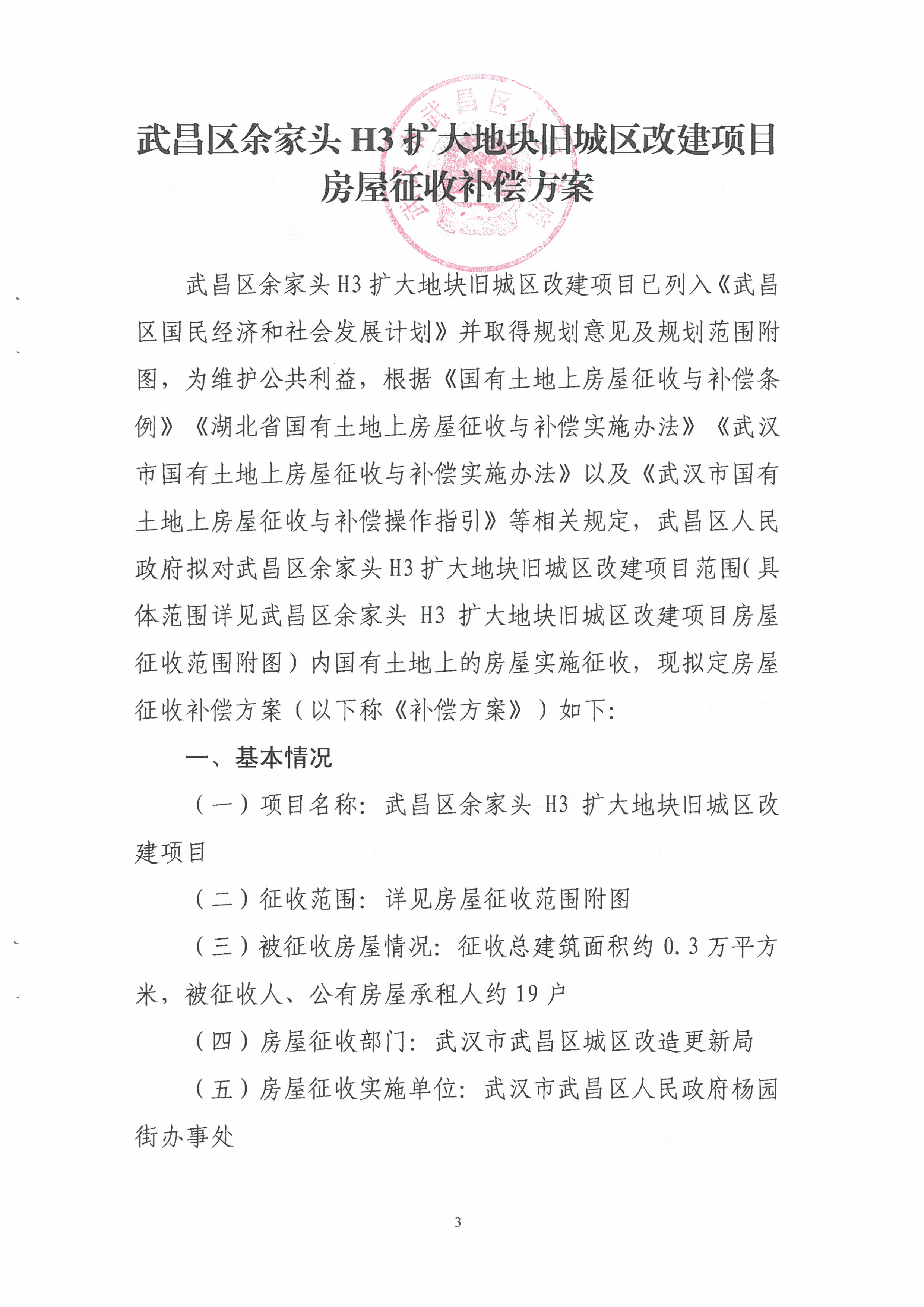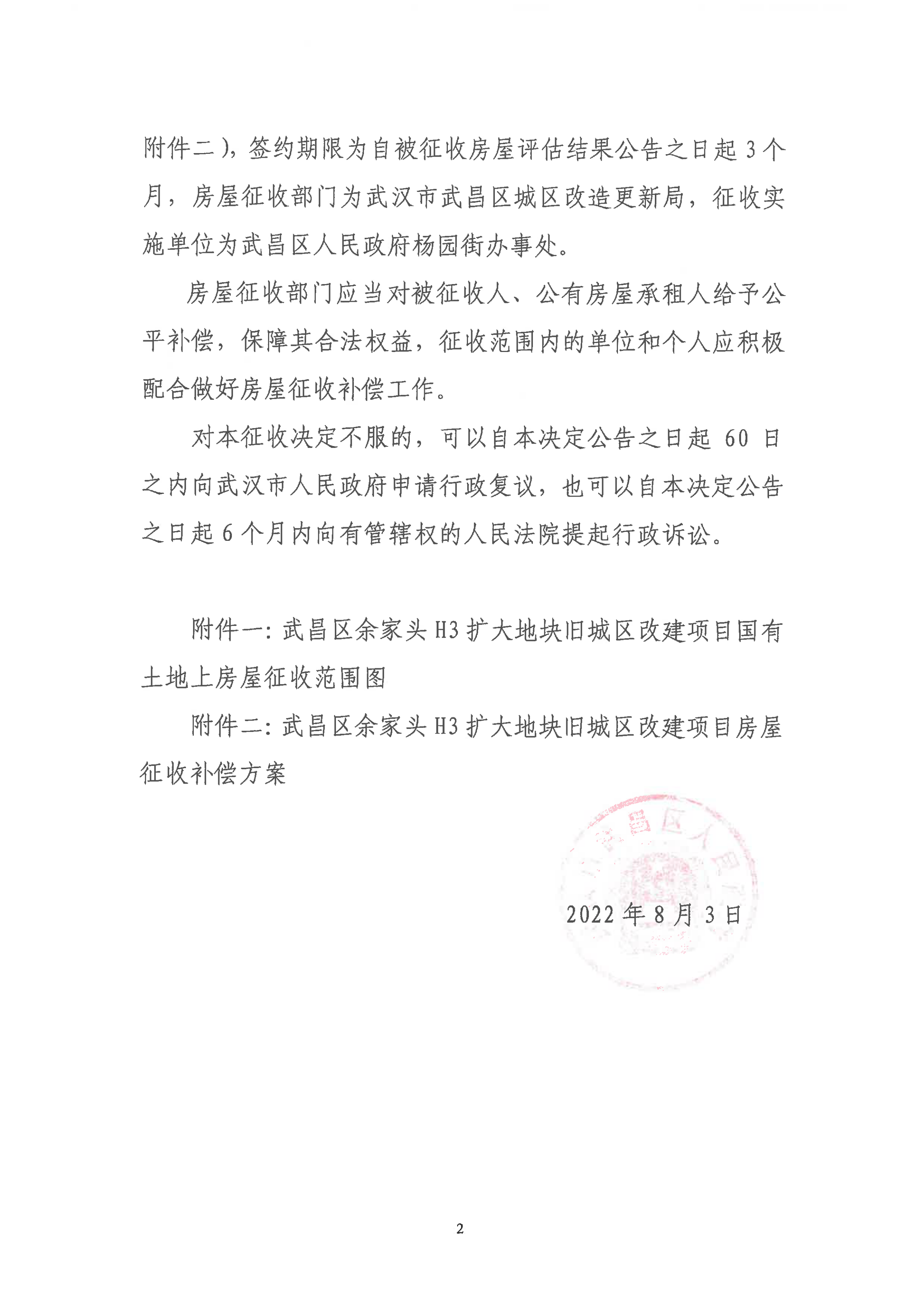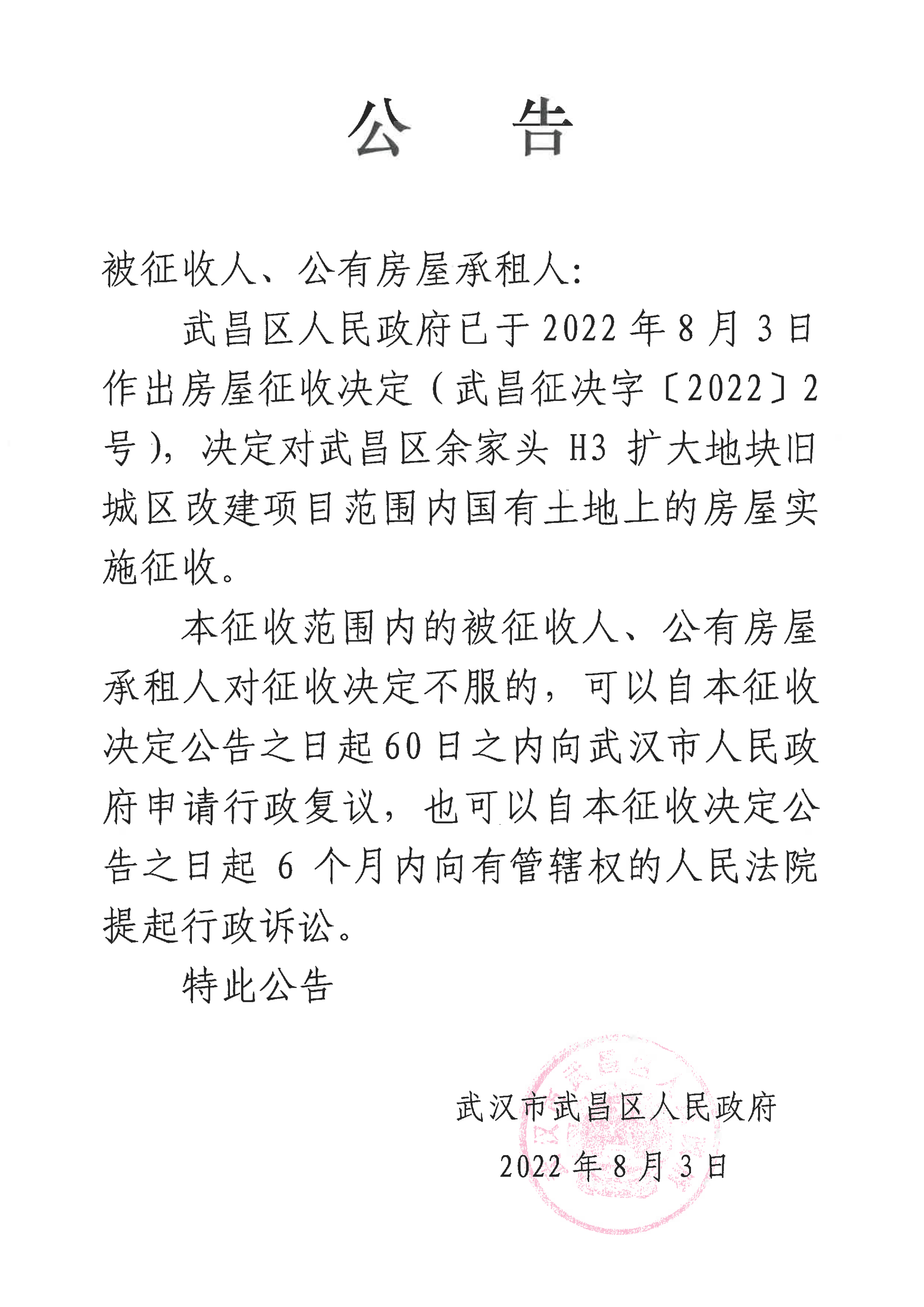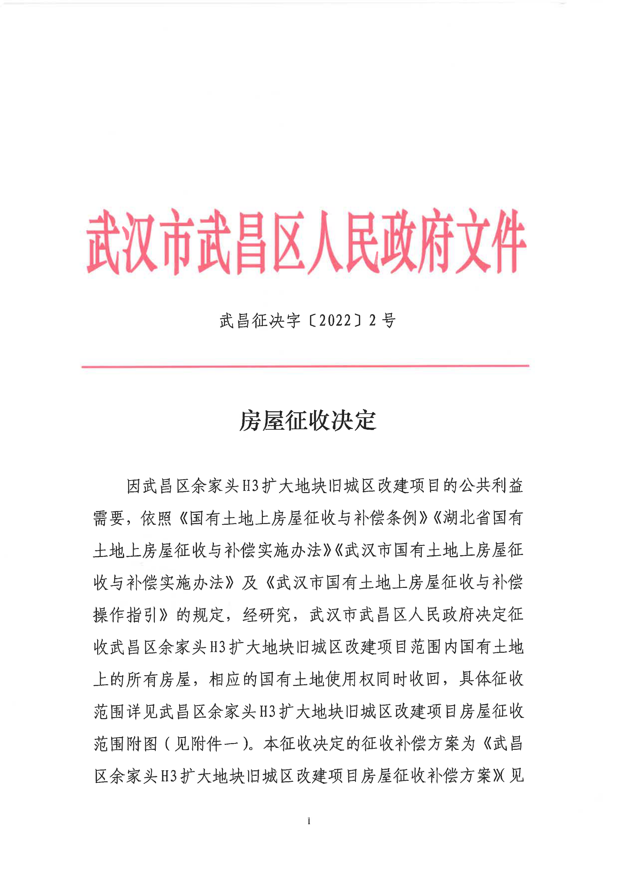 武昌区余家头H3扩大地块旧城区改建项目房屋征收决定