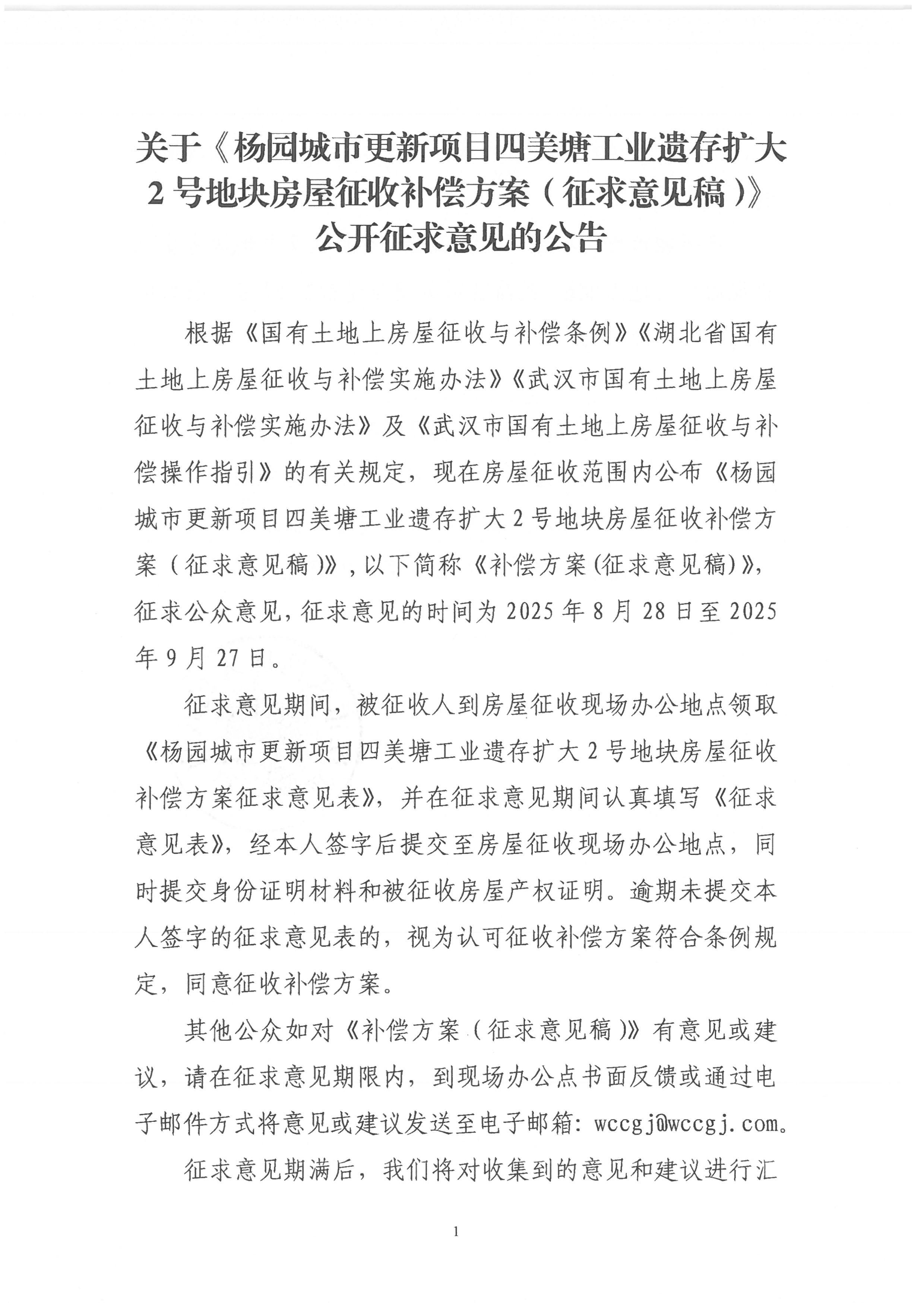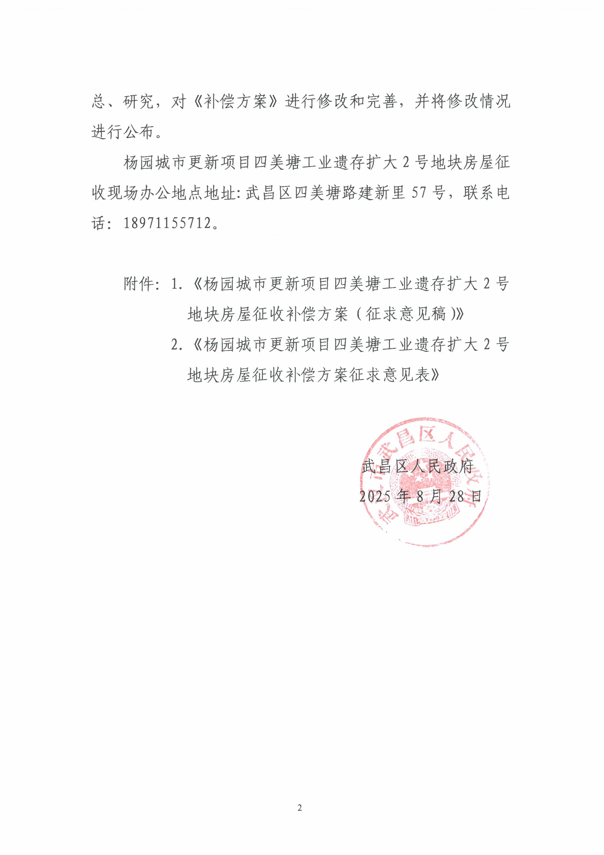 关于《杨园城市更新项目四美塘工业遗存扩大2号地块房屋征收补偿方案(征求意见稿)》公开征求意见的公告