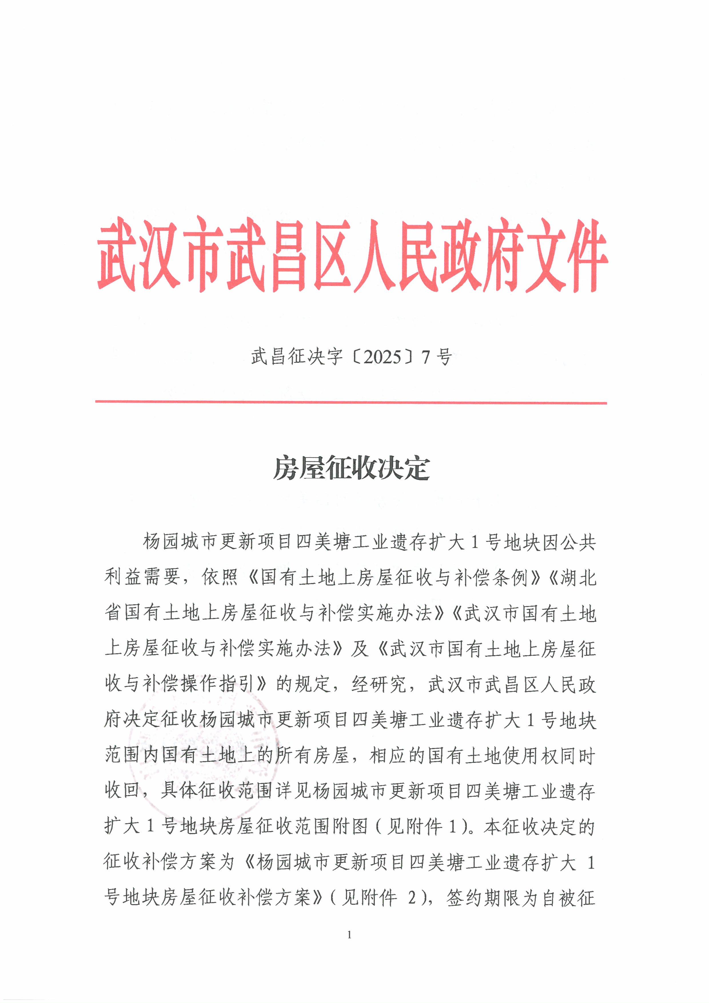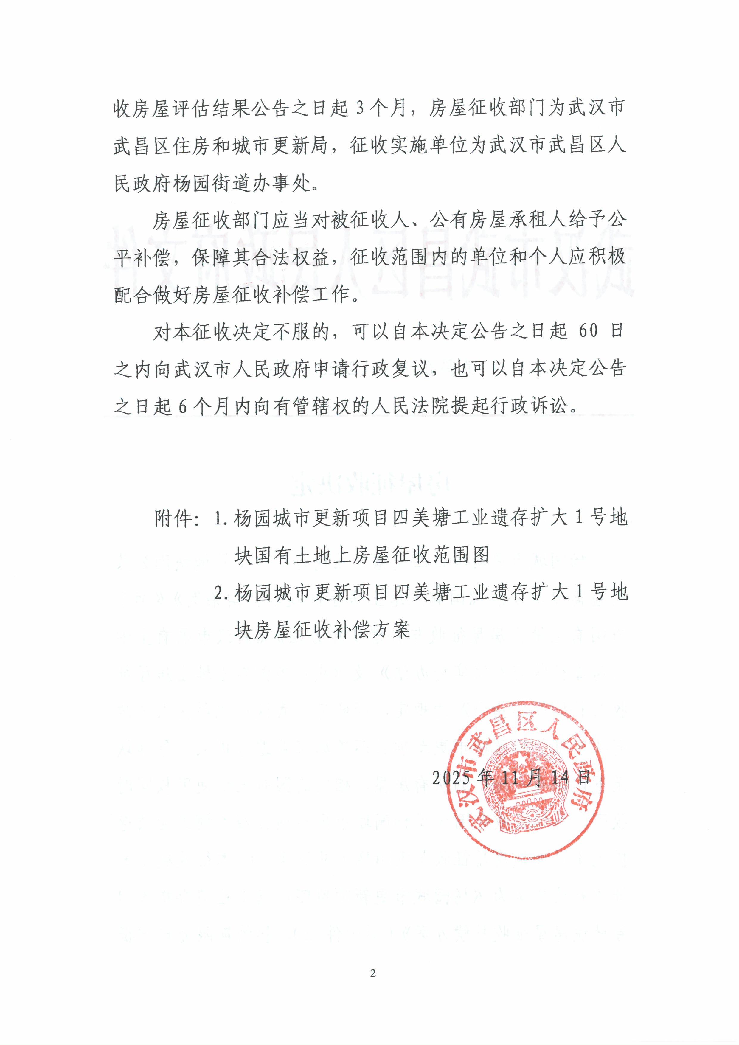 房屋征收决定(杨园城市更新项目四美塘工业遗存扩大1号地块)