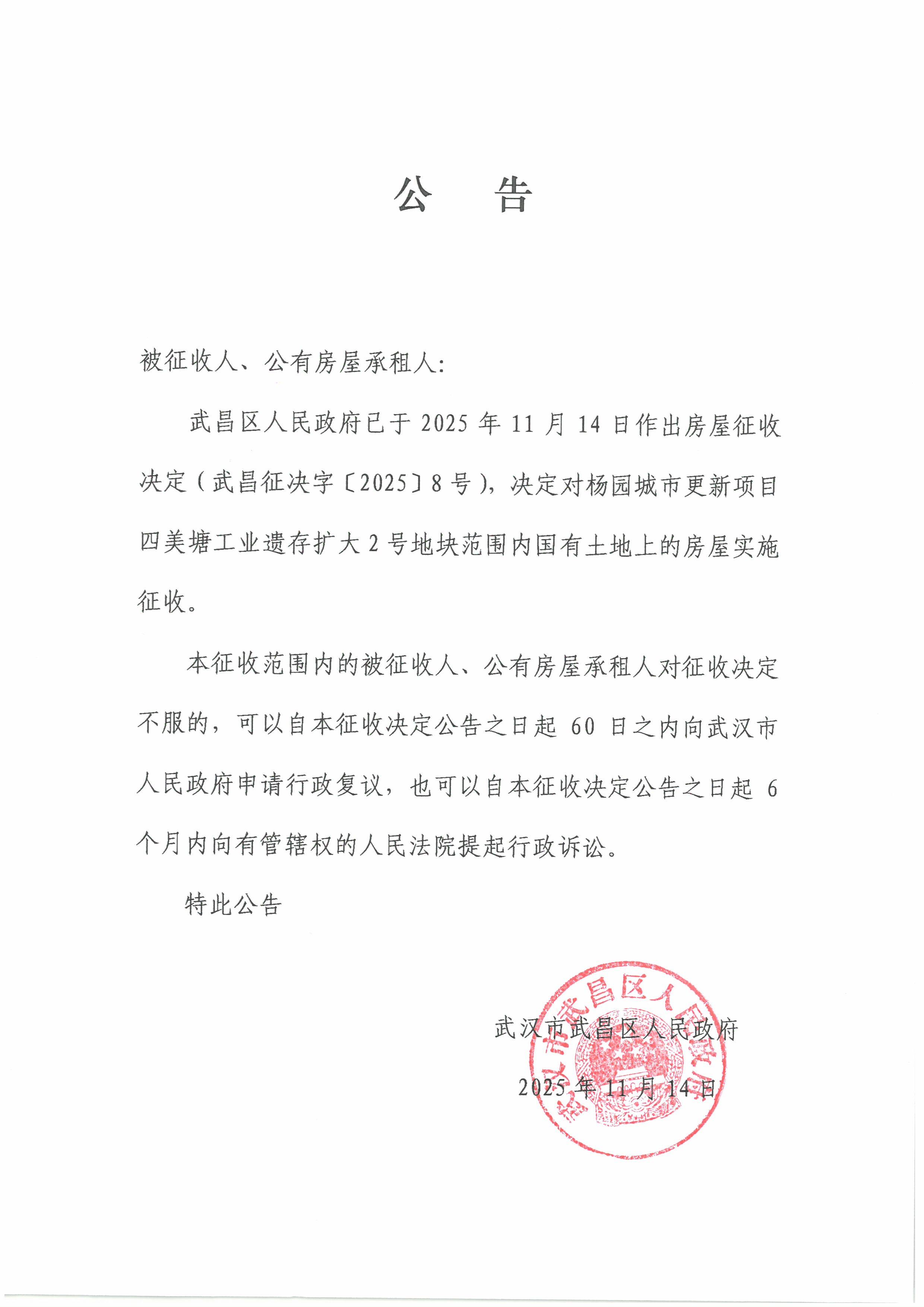 房屋征收决定(杨园城市更新项目四美塘工业遗存扩大2号地块)