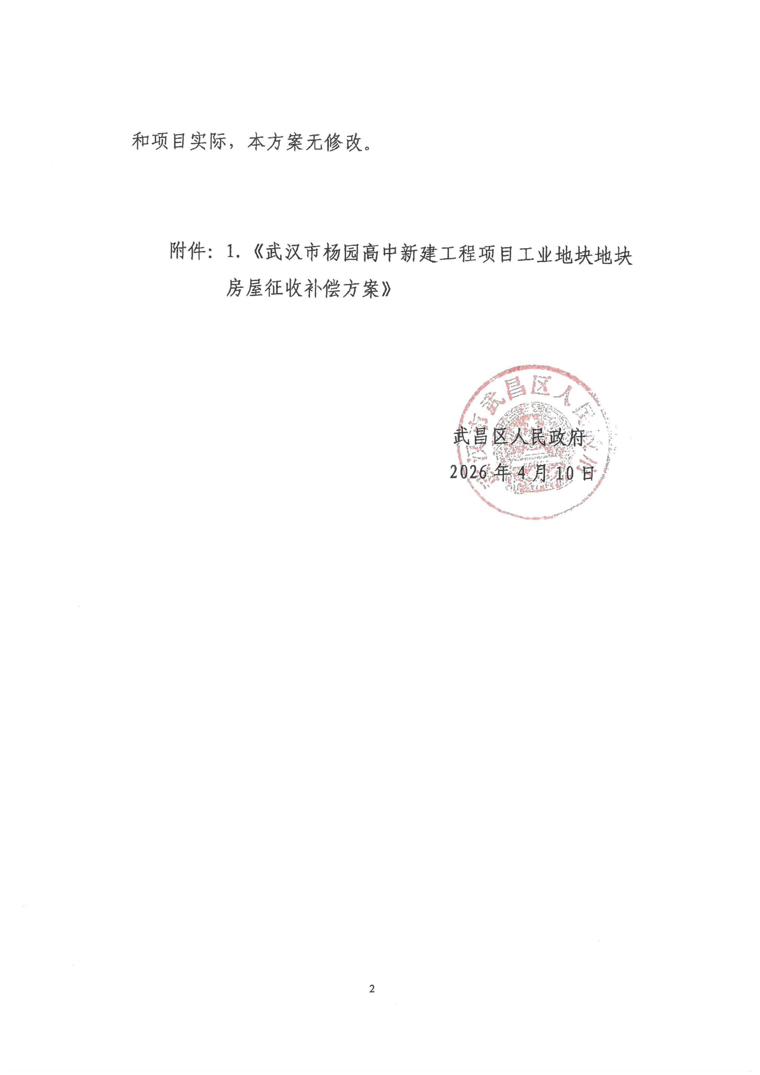 关于《武汉市杨园高中新建工程项目工业地块房屋征收补偿方案(征求意见稿)》公开征求意见情况及方案修改情况的公告